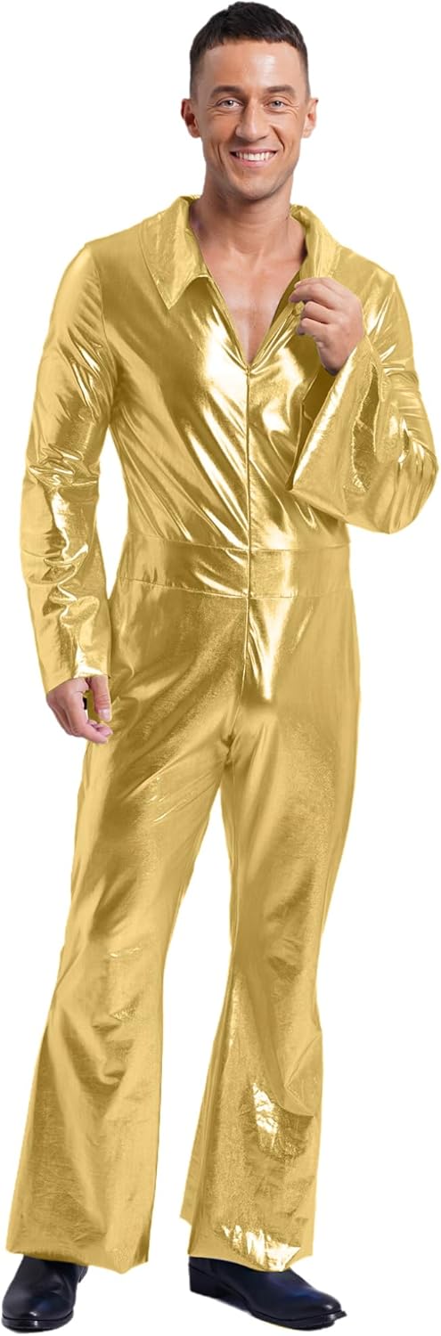 • 70er Jahre Disco Overall Herren - Glitzer Pailletten Jumpsuit Für Partys