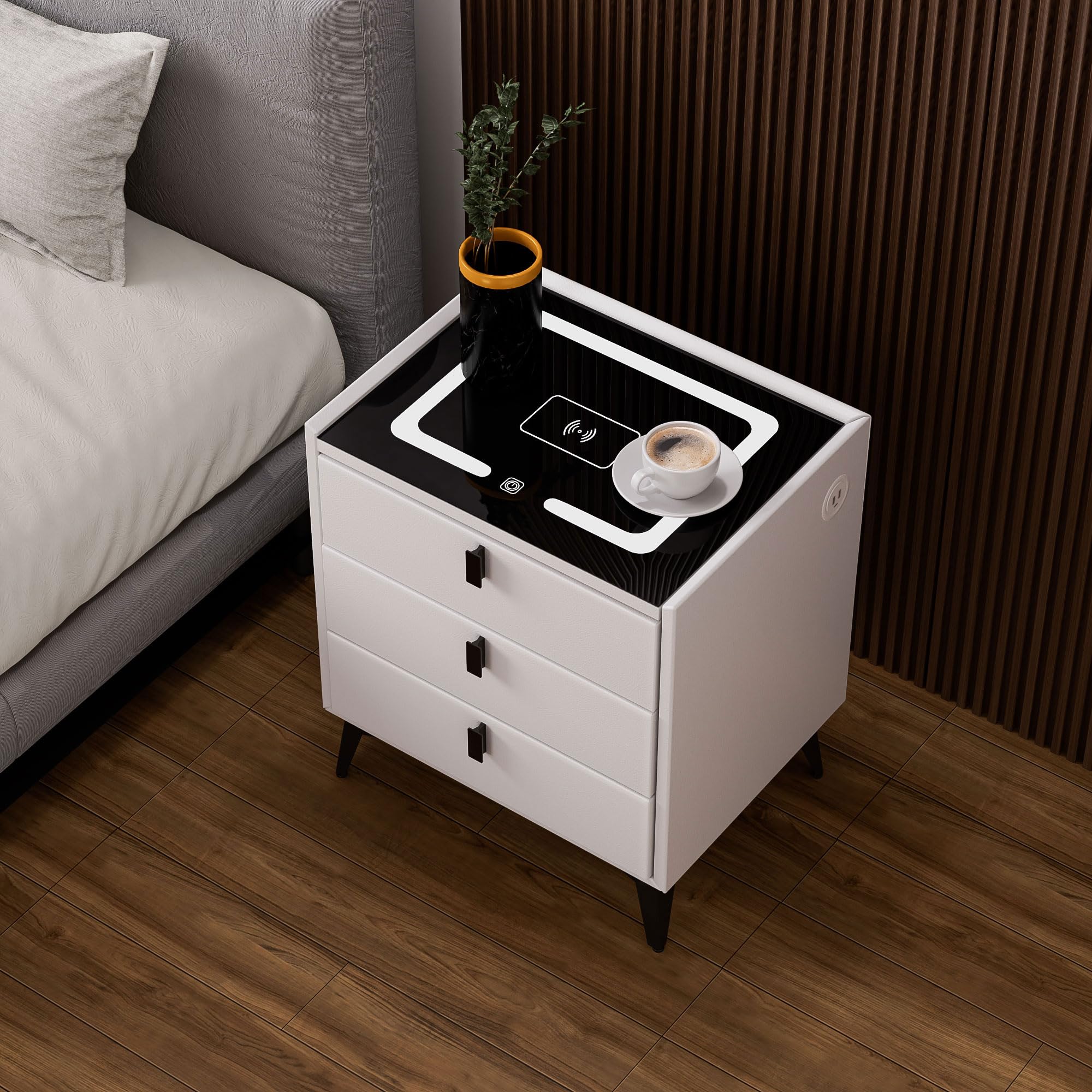 • Oyajia Nachttisch Mit Wireless Charging - 3 Schubladen Mit LED-Beleuchtung