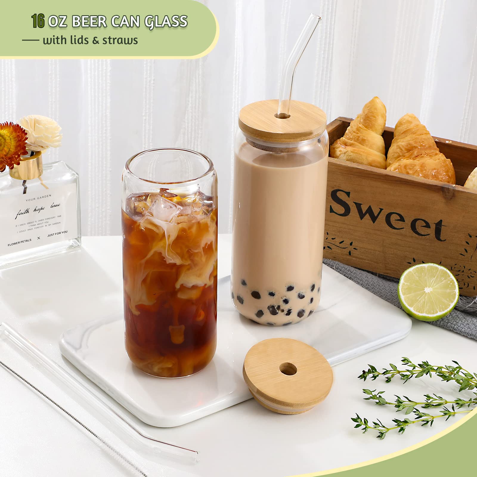 Das komplette Set enthält alles, was du brauchst: Das 16 oz (ca. 470 ml) Glas, passenden Deckel, Glas-Strohhalm und sogar eine praktische Reinigungsbürste. So bleibt dein Lieblingsglas immer hygienisch sauber.