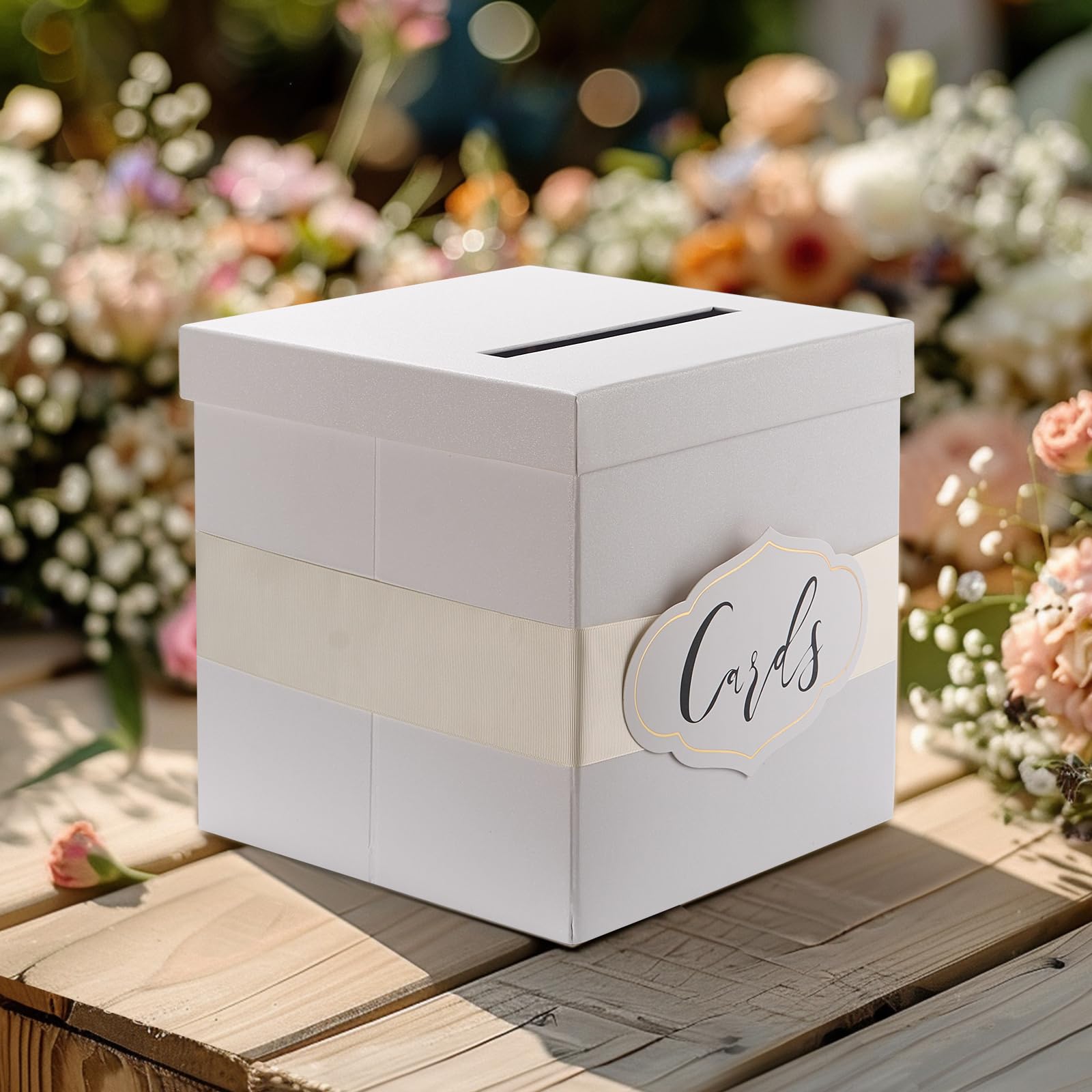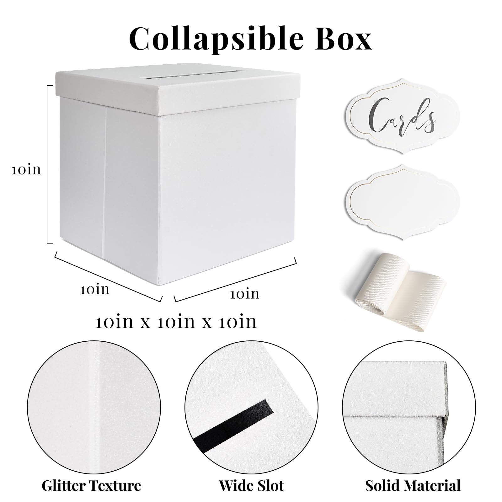 Perfekt für deine große Feier! Diese wunderschöne glitzernde Karten-Box im schwarzen Design ist ein absoluter Hingucker. Mit 25,4x25,4x25,4 cm groß genug für 150-200 Karten oder Geschenkumschläge. Einfach aufzufalten und aufzustellen - kein Werkzeug nötig! Der große Schlitz (19,1x2 cm) sorgt dafür dass alle Karten sicher landen. Mit eleganter elfenbeinfarbener Schleife und beschriftbaren Etiketten - personalisierbar für deinen Anlass. Aus stabilem Karton gefertigt - hält was aus. Nicht nur für Hochzeiten super, sondern auch für Geburtstage, Abschlussfeiern, Baby-Shower und andere besondere Events. Das geprägte Glitzer-Design verleiht deiner Dekoration sofort einen festlichen Touch. Einfach das beiliegende 'Karten'-Schild anbringen oder dein eigenes Design gestalten. Von PAPER FAIR - bekannt für hochwertige Party-Accessoires. Mach deine Feier unvergesslich mit dieser stylischen Karten-Box die nicht nur praktisch ist, sondern auch mega aussieht. Hol sie dir und sammle die herzlichen Wünsche deiner Gäste sicher und stylisch!