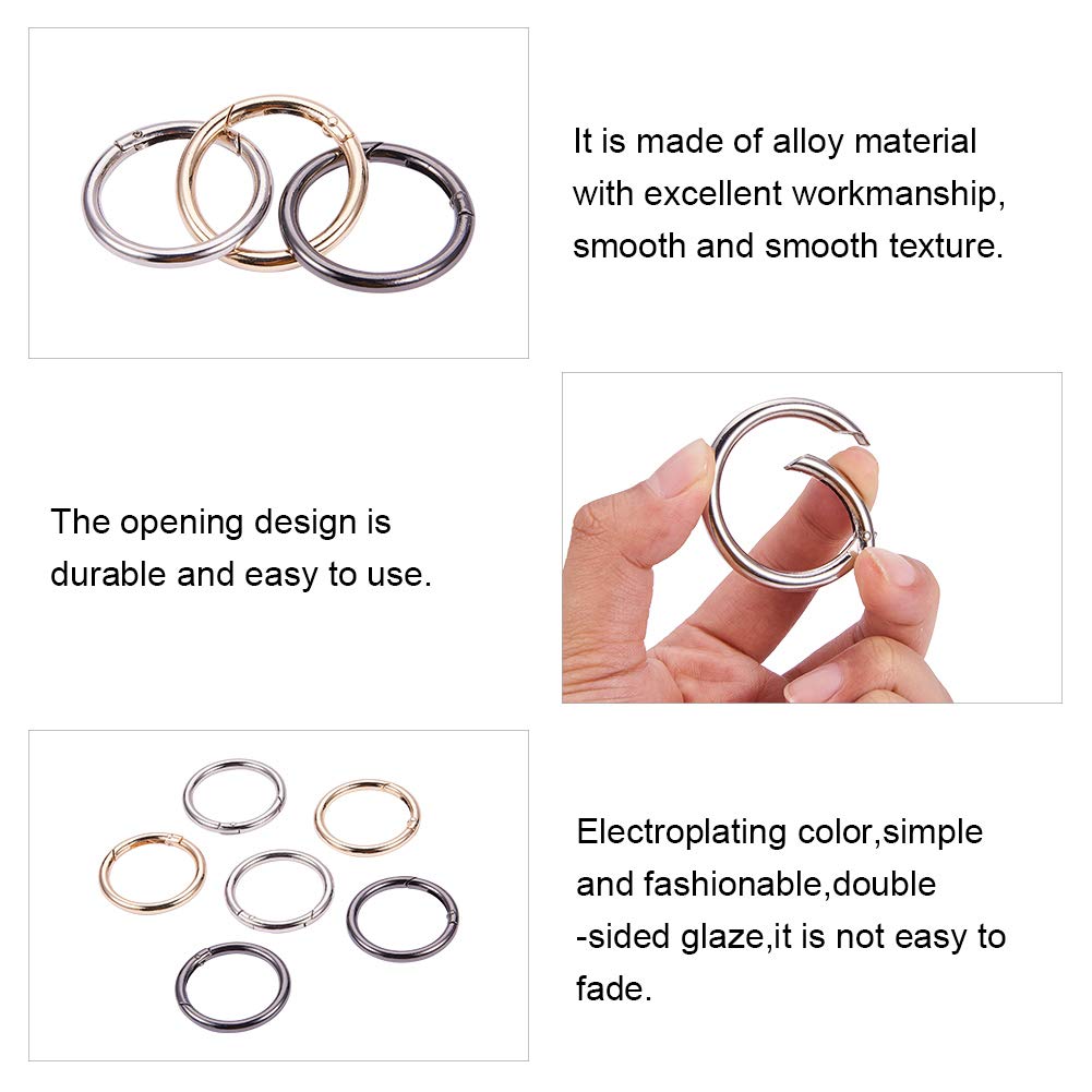 Diese runden Feder-O-Ringe von PATIKIL sind die kleinen Helfer für alles Mögliche! Aus Metall (Zinklegierung) gefertigt, sind sie robust, rostfrei und halten ewig. Mit ihrem Federmechanismus sind sie super einfach zu öffnen und zu schließen. Perfekt als Schlüsselanhänger, für Taschen, Geldbörsen, Gürtel, Lanyards oder als Bastelzubehör zum Aufhängen von Deko. Im Set sind 10 Stück in Goldton dabei, mit einem Drahtdurchmesser von 5mm. Einfach den richtigen Durchmesser wählen und schon hast du einen zuverlässigen Clip, der deine Sachen sicher zusammenhält. Vielseitig, praktisch und langlebig!