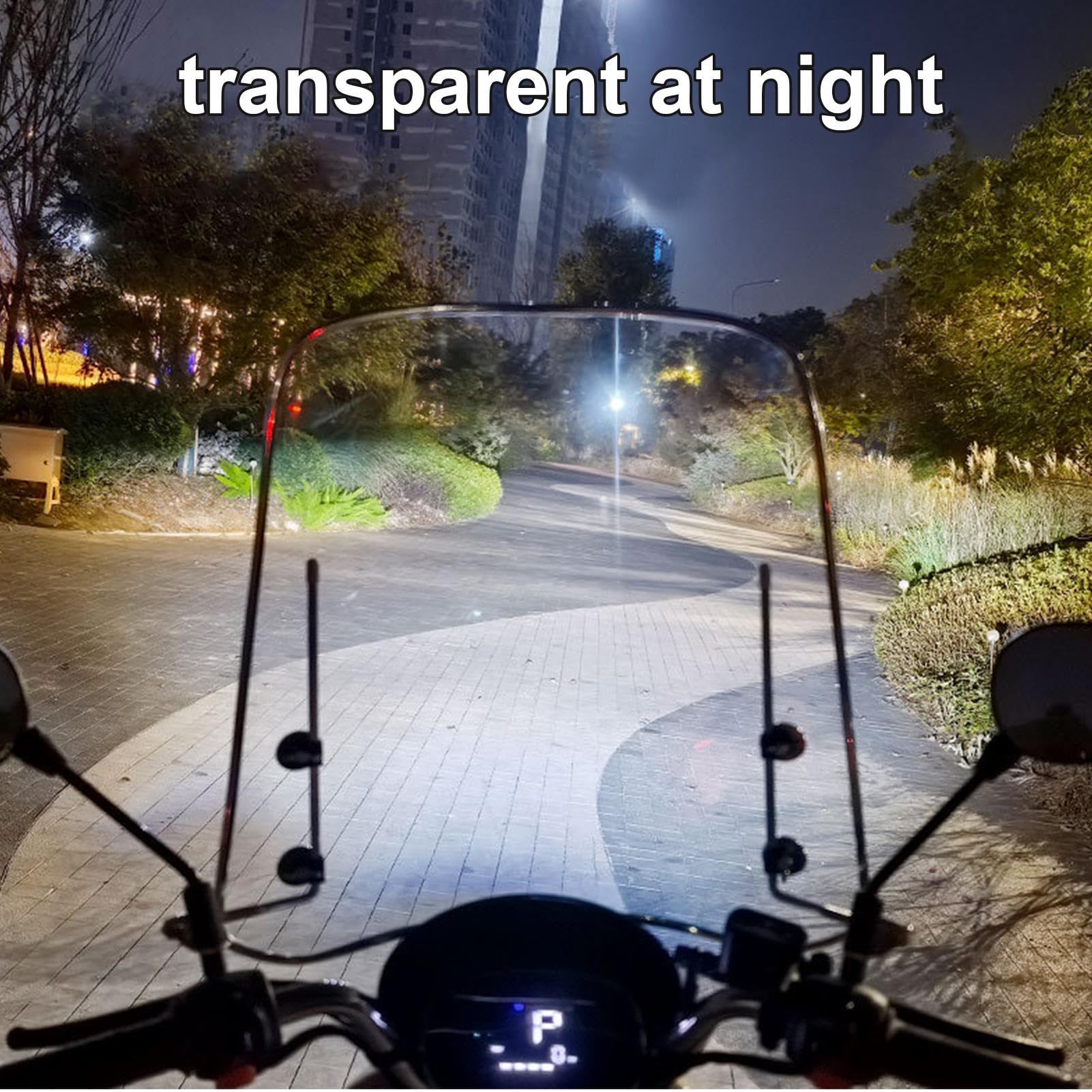 Mach deine Motorrad-Fahrten noch angenehmer! Diese hochtransparente Windschutzscheibe aus robustem PE-Material schützt dich zuverlässig vor Wind, fliegendem Kies und lästigen Insekten. Mit 3-5 mm Stärke ist sie stabil und langlebig. Die hohe Lichtdurchlässigkeit sorgt für eine kristallklare Sicht - selbst bei Regen oder in der Nacht. Antibeschlag und kratzfest bleibt die Sicht immer optimal. Die Montage ist wirklich einfach: Detaillierte Anleitung liegt bei und alles notwendige Zubehör ist enthalten. Keine professionellen Werkzeuge nötig! Das clevere Design ermöglicht auch eine schnelle Demontage, falls mal nötig. Verfügbar in verschiedenen Größen und Stilen, passt sich perfekt den meisten Motorrad- und Elektrofahrzeug-Modellen an. Sieht nicht nur gut aus, sondern verbessert auch spürbar deine Fahrsicherheit. Gib deinem Bike einen individuellen Look und genieße windgeschützteres Fahren!