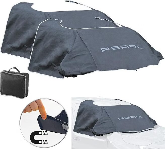 Schluss mit Eiskratzen! Dieses praktische 3er-Set Scheibenabdeckungen von PEARL macht dein Auto winterfest. Einfach über Frontscheibe, Seitenscheiben und Spiegel legen und mit den 12 Magneten fixieren - schon bist du geschützt vor Eis, Schnee und Frost. Die seitlichen Laschen klemmen sicher in den Türen, selbst bei Sturm bleibt alles an Ort und Stelle. Auch viele Türschlösser bleiben eisfrei! Aus reißfestem PP-Vlies, wasserabweisend und lackschonend. Maße 270x94 cm passen für fast alle PKWs. Inklusive praktischer Aufbewahrungstasche. Mach deine Wintermorgen entspannter - einfach abdecken und am nächsten Tag einsteigen und losfahren!