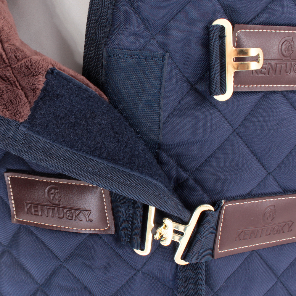 Die PFIFF Flacida Stalldecke - perfekt für kalte Tage! Mit 200g Füllung, Fleecekragen gegen Scheuerstellen, Brustverschlüssen und Beinschnüren. Obermaterial 420 Denier Polyester, robust und atmungsaktiv. Waschbar bei 30°C, Farbe dunkelblau. Schweillatz schützt zusätzlich. Sitzt perfekt, wärmt gut und ist dabei nicht zu schwer. Dein Pferd bleibt kuschelig warm im Stall oder auf der Weide. Qualität die man sieht und das Pferd spürt!
