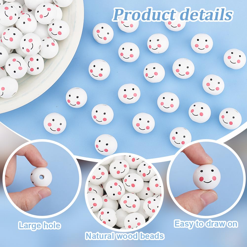 Perfekt für die Weihnachtszeit! Dieses niedliche Set mit 80 Schneemann-Perlen aus Holz bringt festliche Stimmung in dein Zuhause. Die weißen Perlen haben einen Durchmesser von 20mm und ein großes Loch von 4,5mm - ideal zum Basteln von Kränzen, Girlanden oder Schmuck. Besonders praktisch: Es sind 6 verschiedene Stile enthalten, darunter 40 Schneemann-Köpfe und 40 Körper in 5 Designs. Die Perlen sind aus natürlichem Holz, sorgfältig poliert und das Muster verblasst nicht. Perfekt für DIY-Projekte - du kannst sie bemalen oder einfach so verwenden. Ob für Christbaumschmuck, Halsketten oder Deko im Bauernhausstil - hier findest du alles für weihnachtliche Bastelstunden!