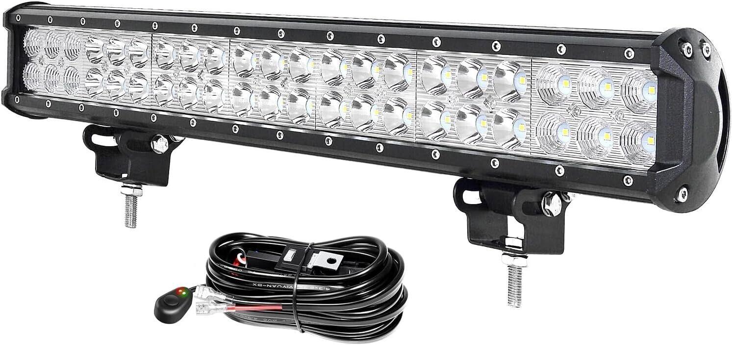 Boah, jetzt wird's hell! Mit diesem PICAA 32 Zoll LED Lightbar Set siehst du auf der Piste oder im Gelände einfach alles. Der Riesen-Lichtbalken hat satte 405W und kommt noch mit zwei praktischen 4 Zoll Arbeitsscheinwerfern dazu - perfekt für alle, die auch nachts sicher unterwegs sein wollen. \\n\\nWas ich besonders cool finde: Die Dinger sind mega vielseitig! Du kriegst sowohl 30° Spot-Strahlen für weite Distanzen als auch 60° Flood-Licht für breite Ausleuchtung. Mit 6000K weißem Licht siehst du alles kristallklar, und das bei Temperaturen von -40 bis 85 Grad - da macht dem Teil weder Winterkälte noch Sommerhitze was aus. \\n\\nDas Gehäuse ist aus stabilem Aluminiumdruckguss und die Linse aus bruchfestem PC-Material. IP67 wasserdicht heißt: Du kannst damit auch durch Pfützen oder Regen fahren, ohne dass was passiert. \\n\\nUnd das Beste: Passt auf so ziemlich jedes Fahrzeug! Ob 12V oder 24V - von LKW über SUV bis zu Traktoren und Booten. Die Installation ist kein Hexenwerk dank mitgeliefertem Kabelbaum-Kit und verstellbarer Halterung. \\n\\nIm Lieferumfang ist alles dabei, was du brauchst: 1x LED Lightbar, 2x LED Arbeitsscheinwerfer und das komplette Kabelbaum-Kit. Einfach auspacken, montieren und ab geht's in die Nacht! Perfekt für Offroad-Abenteuer, Baustellen oder einfach wenn du mal wieder spät von der Arbeit nach Hause fährst und sicher sein willst, dass du alles siehst.
