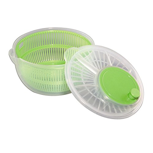 Der praktische Alleskönner für deine Küche! Diese Salatschleuder mit Kurbel macht nicht nur Salat trocken, sondern kann auch als Sieb, Salatschüssel oder Servierschale verwendet werden. Mit 3 Litern Fassungsvermögen und 20 cm Durchmesser ist sie groß genug für eine ganze Familie. Die transparente Schale lässt dich immer sehen, was drin ist, und das weiße Innensieb sorgt für perfekte Trocknung. Einfach Salat rein, Deckel drauf, Kurbel drehen - und schon ist der Salat trocken! Aus lebensmittelechtem Kunststoff und spülmaschinenfest, also super easy zu reinigen. Macht nicht nur Salat, sondern auch Obst und Gemüse trocken. Ein Muss für jede Küche - ob für Singles oder Familien!