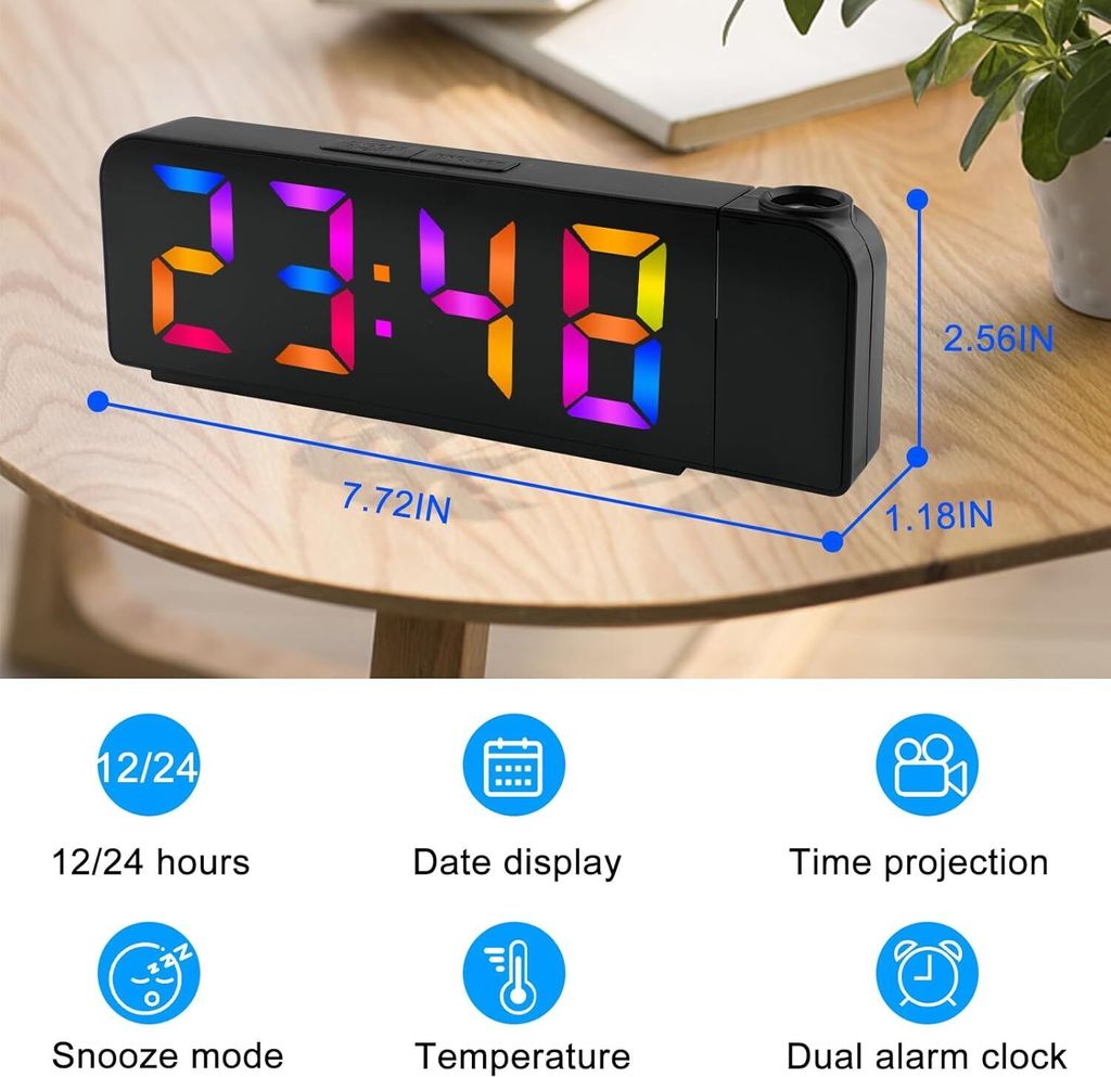 PORFOYO Projektionswecker - RGB LED Mit Spiegel & Nachtlicht