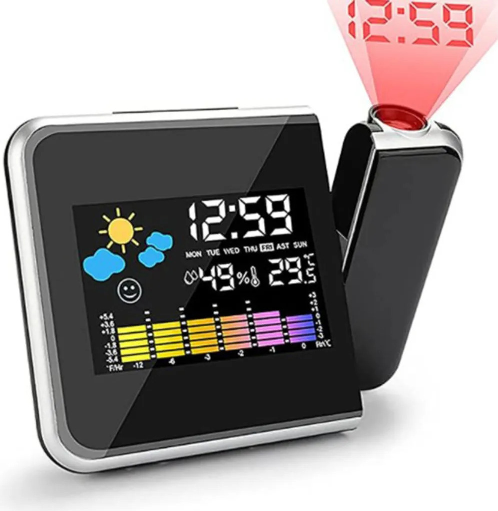 Dieser Wecker ist echt der Hammer! Projektierte die Uhrzeit an Decke oder Wand - der Projektor ist 180° drehbar für perfekte Positionierung. Mit buntem RGB-LED Display und 10 Farben fürs Nachtlicht. Super praktisch: USB-C und USB-A Anschlüsse zum Laden deiner Geräte. Helligkeit in 6 Stufen einstellbar, Wecklautstärke von 55-95dB - auch für Tiefschläfer geeignet! Maße: 168x97x40mm - kompakt aber mit großer Wirkung. Inklusive Netzadapter und Bedienungsanleitung. Perfekt für Schlafzimmer, Kinderzimmer oder Büro!