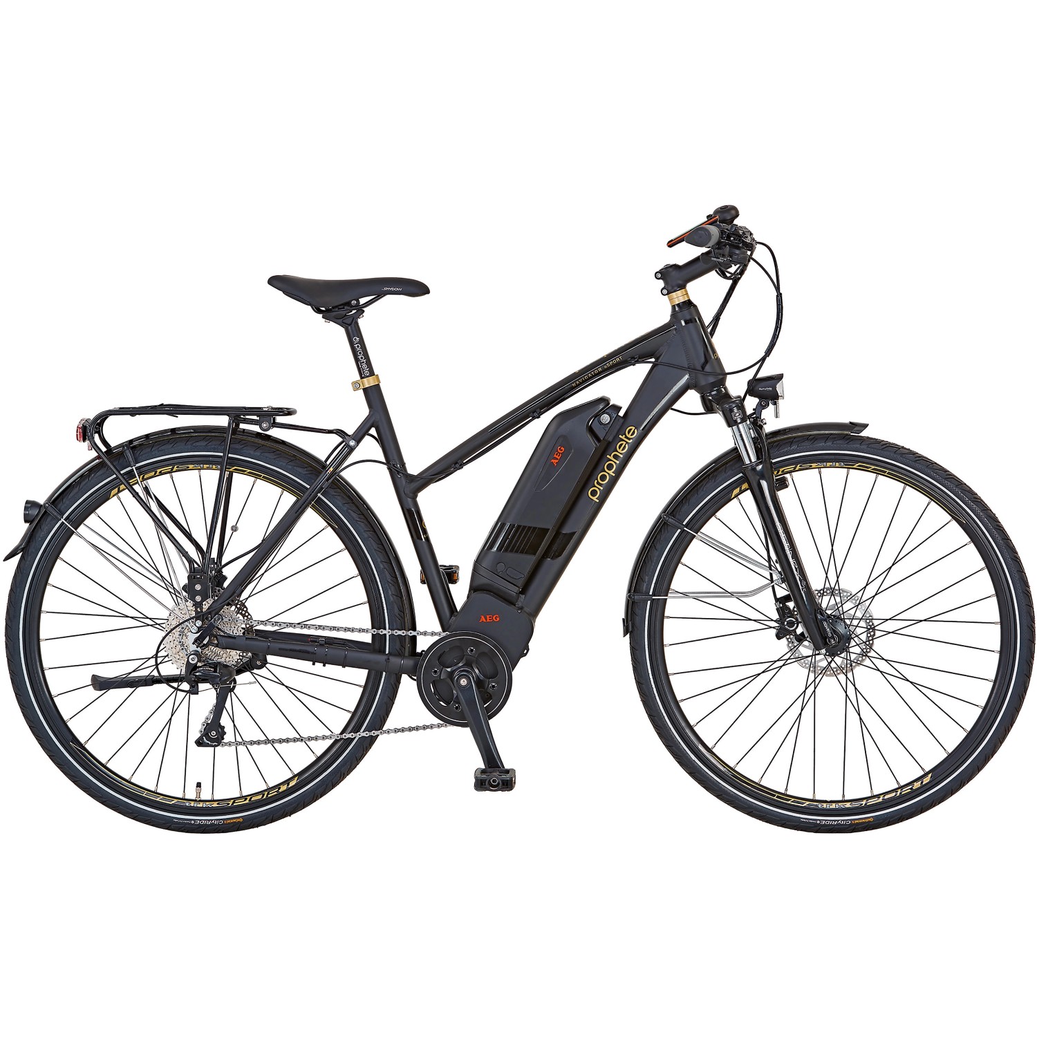 Mega, dieses PROPHETE E-Bike für Damen! Mit dem kraftvollen 250W AEG SportDrive Mittelmotor und satten 100 Nm Drehmoment meisterst du jeden Berg und jede Steigung locker. Der 672 Wh Akku gibt dir eine Reichweite von bis zu 180 km - damit kommst du echt weit! Die Shimano 10-Gang Schaltung sorgt für sanfte Gangwechsel, und die hydraulischen Scheibenbremsen von Shimano bremsen sicher und zuverlässig. Besonders praktisch: Die Schiebehilfe, wenn du mal schieben musst! Die SUNTOUR Federgabel dämpft Stöße ab, und der Memory Foam Sattel ist super bequem - auch bei langen Touren. Mit dem 100 Lux LED-Scheinwerfer mit Standlicht und den reflektierenden Continental Reifen bist du auch bei Dunkelheit sicher unterwegs. Das TFT-Display zeigt dir alle wichtigen Infos auf einen Blick. Rahmenhöhe 52 cm, 28 Zoll Bereifung - perfekt für die meisten Damen. Ob zur Arbeit, für ausgedehnte Radtouren oder einfach nur zum Spaß - mit diesem E-Bike macht Fahrradfahren noch mehr Freude! Einfach aufladen, aufsteigen und losdüsen!