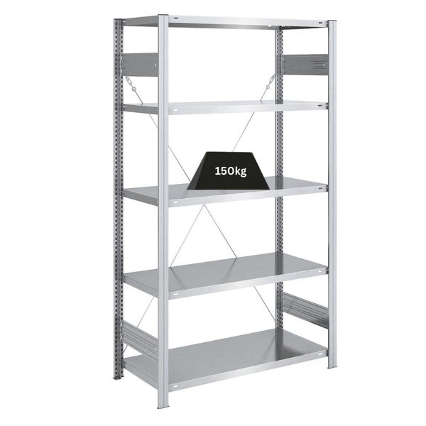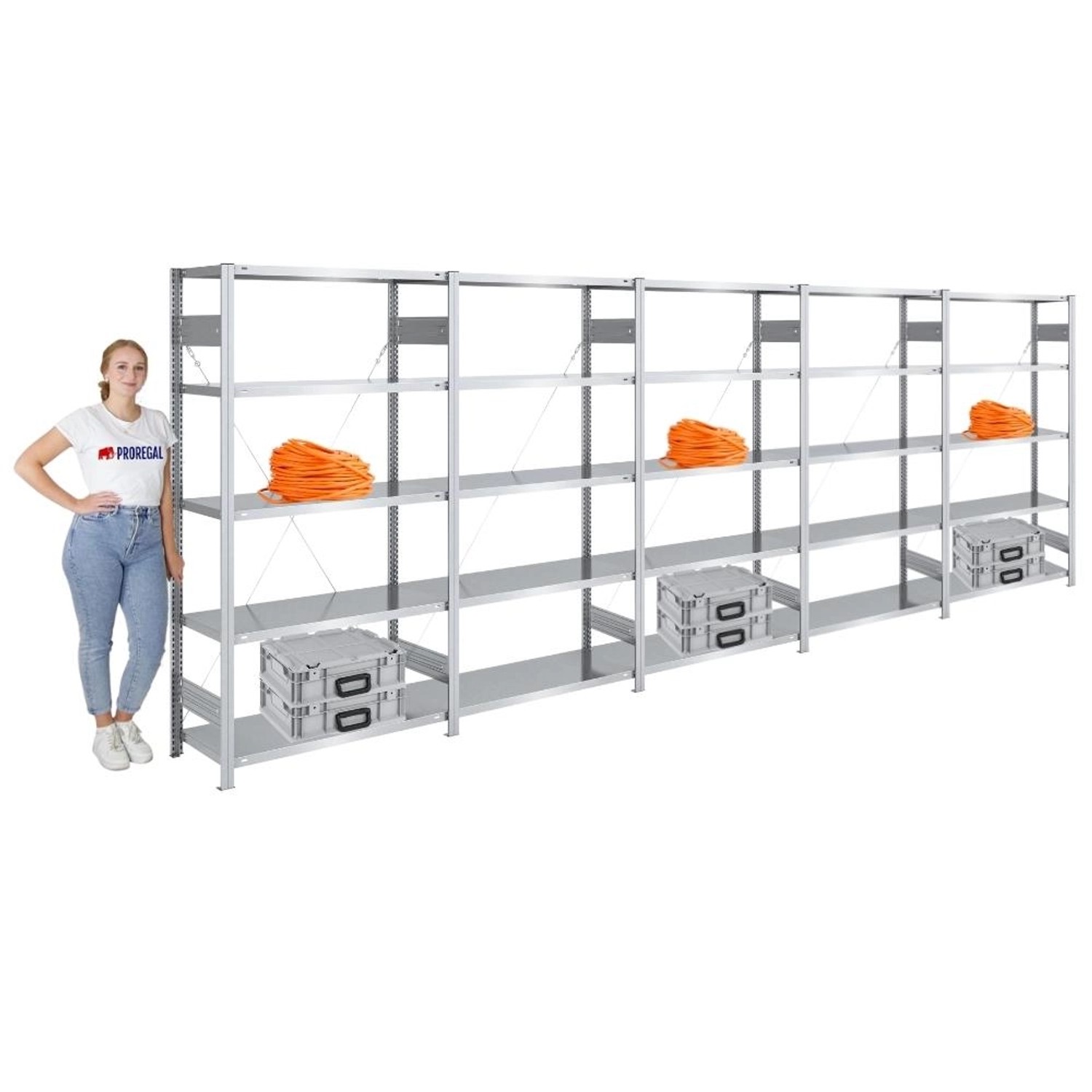 Dieses PROREGAL Schwerlastregal Silver Mamba ist ein echter Kraftprotz - made in Germany! Mit den Maßen 200x200x40cm und 5 Ebenen bietet es reichlich Stauraum. Jede Ebene hält satte 150kg aus - perfekt für schwere Lasten. Verzinkt und damit rostfrei, ideal für Garage, Keller oder Werkstatt. Der Aufbau ist super einfach - nur mit Gummihammer zusammenstecken, keine komplizierten Werkzeuge nötig. Flexibel erweiterbar mit Anbauregalen und zusätzlichen Böden. Ob für professionellen Einsatz im Betrieb oder privat in der heimischen Garage - dieses Regal macht einfach alles mit. Deutsche Qualität, die hält, was sie verspricht!