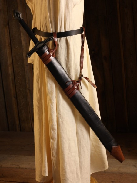 Für alle Mittelalter-Fans und Cosplay-Begeisterten: Dieser Schwertscheide-Gürtel aus hochwertigem PU-Leder ist genau das, was du suchst! Mit seinem authentischen mittelalterlichen Design siehst du damit einfach nur episch aus. Das Kunstleder fühlt sich angenehm an, ist super stabil und verblasst nicht - aber trotzdem leicht genug, um es bequem zu tragen. Das geniale an diesem Gürtel: Er ist komplett verstellbar! Durch die Schnallen und Knopflöcher passt du ihn ganz easy an die Größe deines Schwertes an. So ist deine Waffe immer sicher verwahrt. Ob auf Mittelaltermärkten, Renaissance-Festen, Halloween-Partys oder bei Cosplay-Events - mit diesem Gürtel machst du auf jeden Fall was her. Kombinier ihn mit Ritterkostümen, Wikinger-Outfits oder Piraten-Looks. Im Lieferumfang findest du alles, was du brauchst: das schwarze Schwertholster (12,2x16,8x0,4 cm), einen 70 cm langen Seil, einen 147 cm langen Gürtel und einen Ring. Einfach umhängen und ins Abenteuer starten!