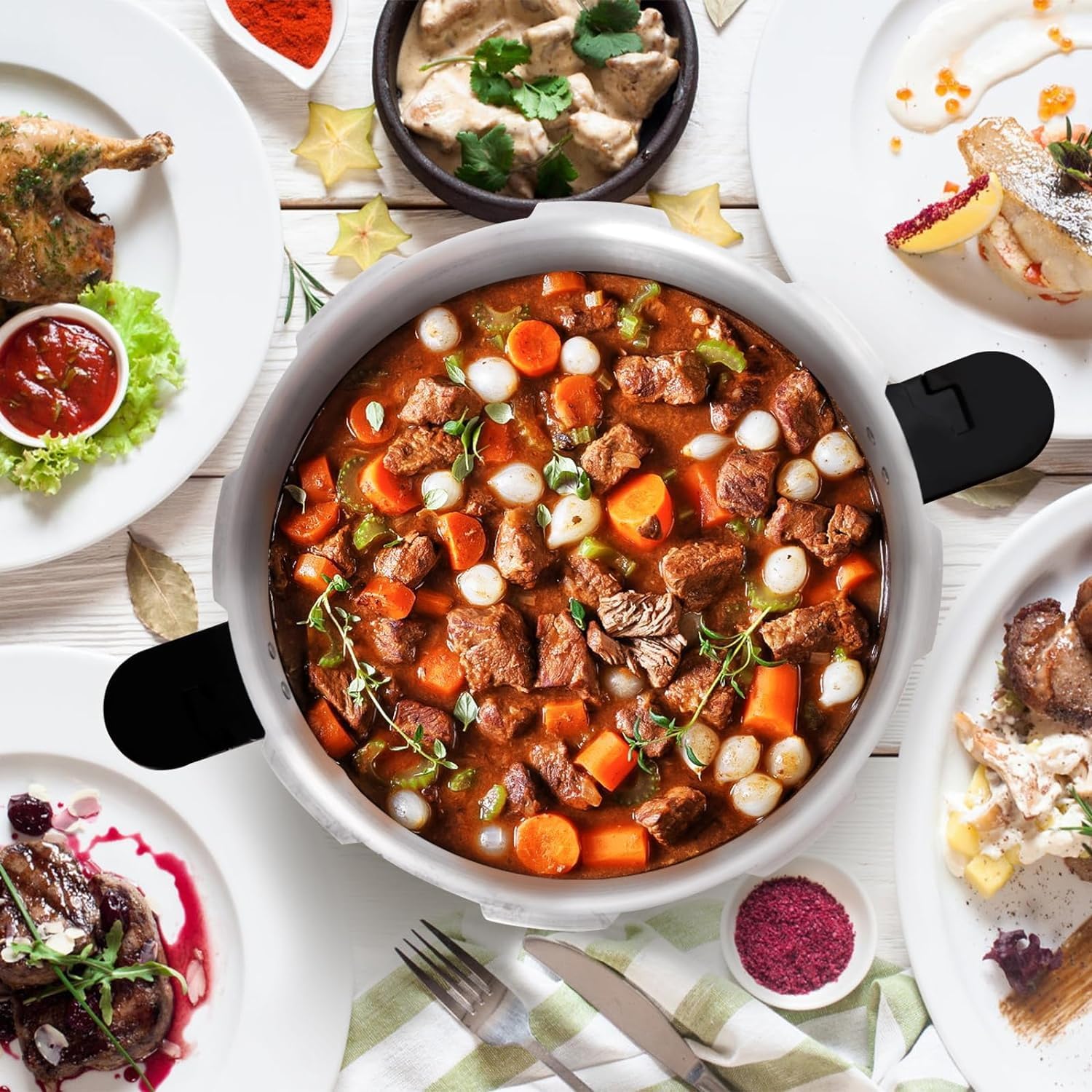 Kochst du gerne, aber hast keine Zeit? Dieser PUDLOR Schnellkochtopf ist deine Rettung! Mit 23 Quart (ca. 22 Liter) Fassungsvermögen ist er groß genug für Familienmahlzeiten und kocht dank 90 kPa Druck alles superschnell gar. Aus robuster Aluminiumlegierung mit verbrühungssicheren Griffen und Silikondichtung für absolute Sicherheit. Einfach Deckel schließen, aufheizen und schon gart dein Essen in Rekordzeit - perfekt für Fleisch, Gemüse, Eintöpfe und mehr. Wichtig: Nur für Gasherde geeignet, nicht für Induktion. Mit klarer Anleitung für die erste Nutzung und einfacher Reinigung. Spare Zeit, Energie und genieße perfekt gegarte Mahlzeiten - deine Küche wird dich lieben!