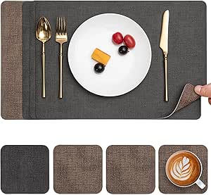 Schütze deinen Tisch vor Flecken und Hitze! Diese 4 Tischsets aus PVC sind echte Allrounder. Doppelseitig nutzbar, bis 80°C hitzebeständig - perfekt für heiße Töpfe oder Tassen. Einfach abwischbar, wasser- und ölabweisend. Maße 45x30cm - passen für die meisten Tische. Aus 70% PVC und 30% Polyesterseide - robust und langlebig. Die dunkelgraue Farbe ist dezent und stylisch. Schimmelresistent, behalten auch nach langer Nutzung ihre Farbe. Flach verpackt - keine lästigen Falten. Ideal für Küche, Esszimmer oder Büro. Praktisch, schön und pflegeleicht - so muss Tischschutz sein! Mach deine Mahlzeiten entspannter ohne Angst vor Flecken. Ein Set das sich lohnt!