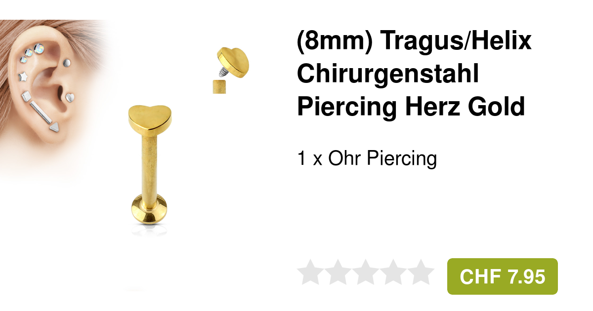 Aus 316L Chirurgenstahl, nickelfrei und hautfreundlich. Mit 14K Goldvergoldung - verblasst nicht! Perfekt für Helix, Tragus, Ohrläppchen - einfach überall.