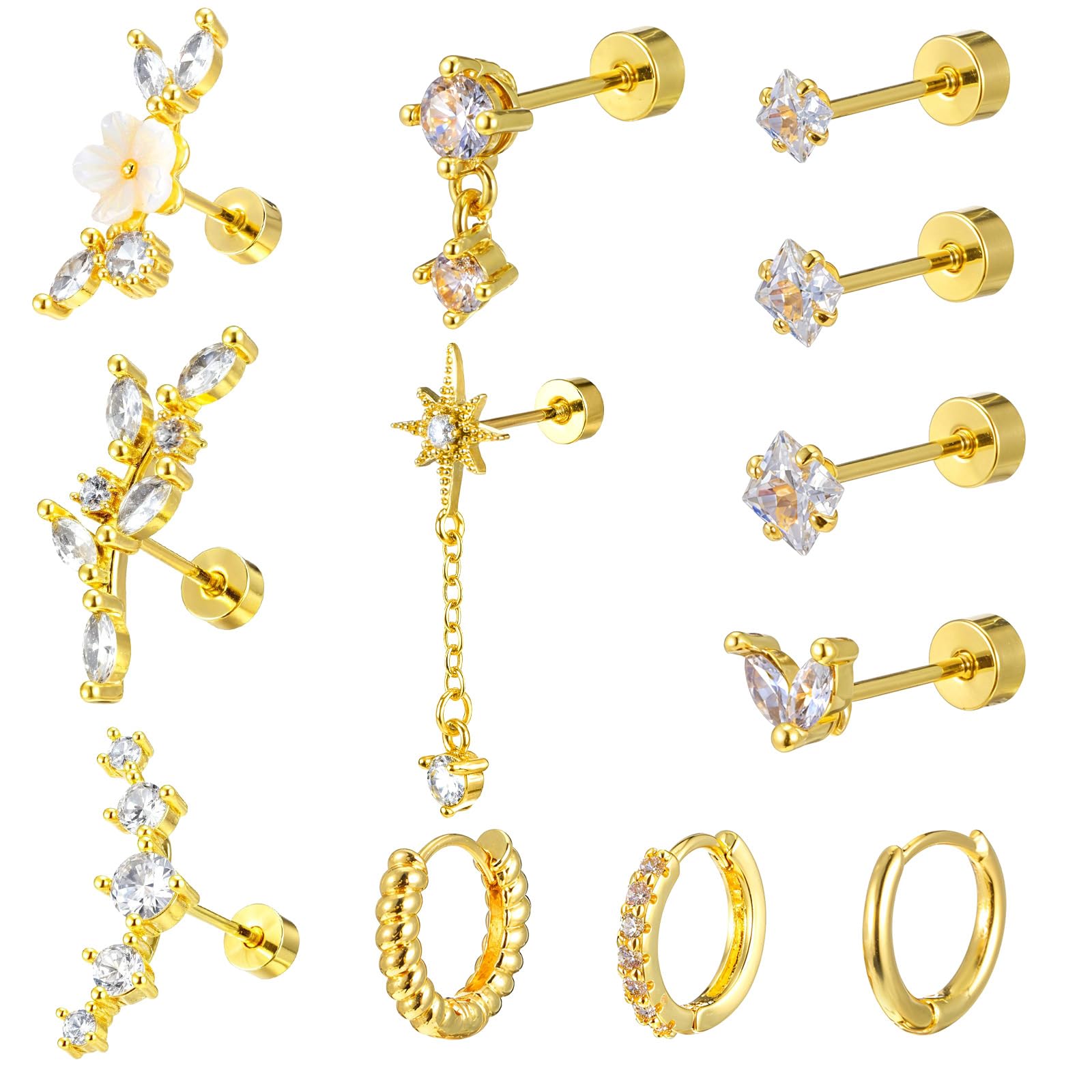 12 Paar Ohrringe Set Gold - Hypoallergen & Stylisch