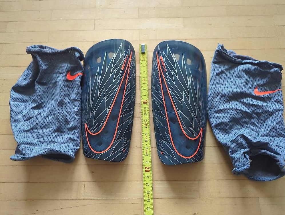 • 2 Paar Schienbeinschoner 11,5x8cm - Fußball Schwarz & Blau