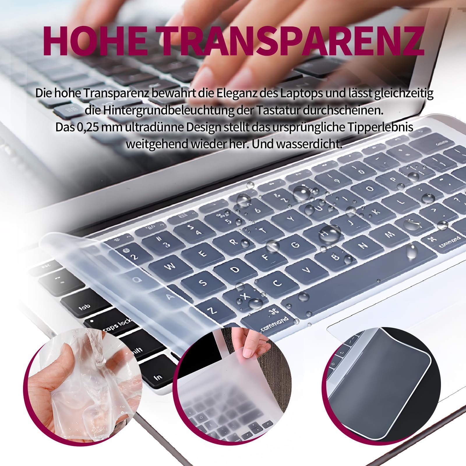 Schütze deine Laptop-Tastatur vor Staub, Krümeln und Spritzwasser! Diese 2 Silikon-Abdeckungen passen für die meisten 15-17 Zoll Laptops. Maße: 38 x 14 cm - vor dem Kauf Tastaturgröße checken! Aus weichem, flexiblem Silikon - umweltfreundlich und langlebig. Einfach auflegen und schützen. Leicht zu reinigen - einfach abwaschen oder desinfizieren. Perfekt für Büro, Schule oder zu Hause. Transparent - du siehst die Tasten trotzdem. Als Barriere in öffentlichen Einrichtungen super praktisch. Verhindert, dass Staub und Speichel in die Tastatur gelangen. Zwei Stück im Pack - eins für unterwegs, eins für daheim. Einfacher Schutz für deine teure Technik!