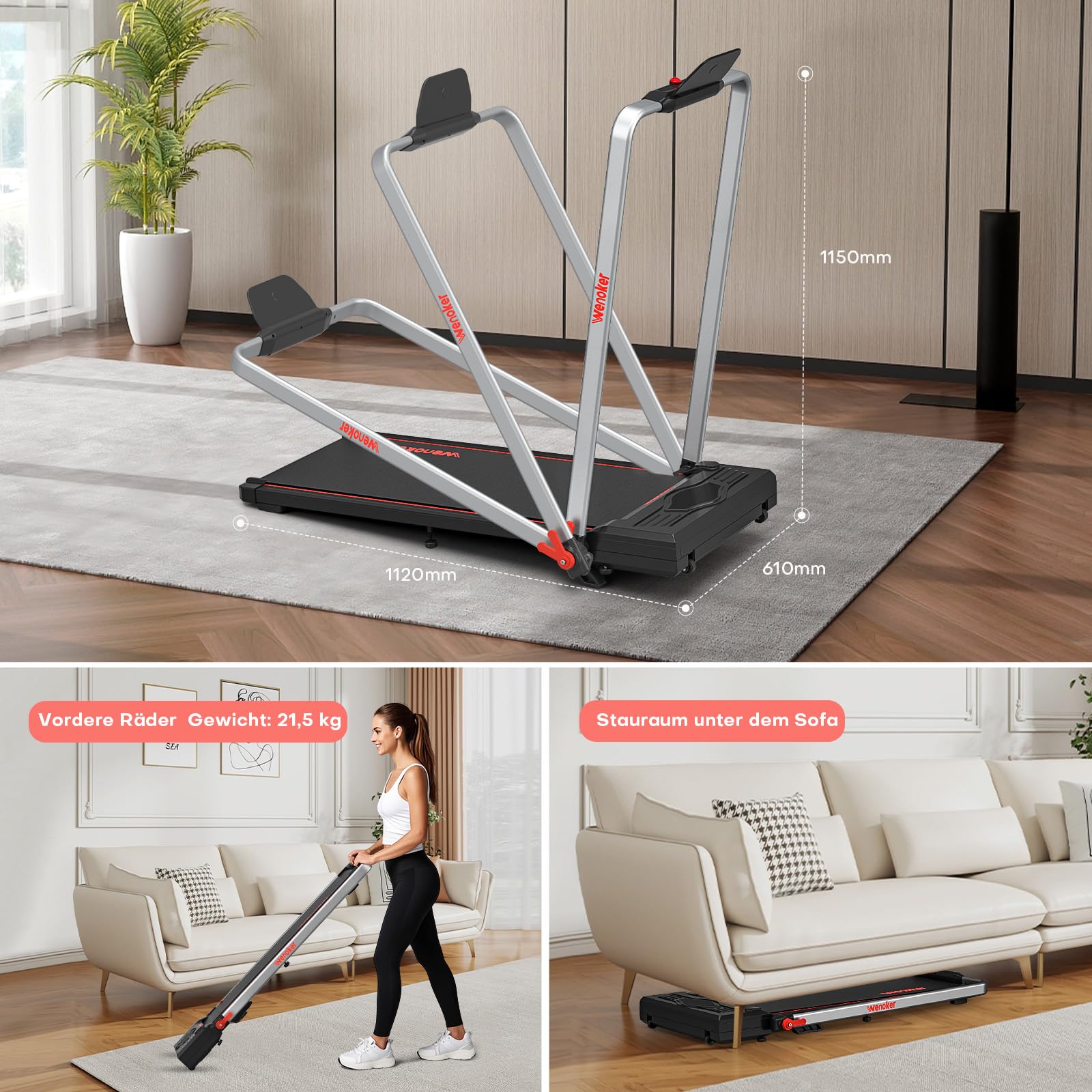 Bewegung im Home-Office war noch nie so einfach! Das YPOO Walking Pad kombiniert Laufen, Wandern und Klettern in einem kompakten Gerät. Mit 3-stufig verstellbarer Neigung für effektiveres Training - steigert die Fettverbrennung um das 1,5-fache. Maximales Benutzergewicht: 140kg. Zwei Trainingsmodi: Gehen (0,8-4 km/h) und Laufen (0,8-8 km/h). Super leise - perfekt fürs Arbeiten, Telefonkonferenzen oder Fernsehen. Nach Gebrauch einfach zusammenklappen (nur 12cm dick) und platzsparend verstauen. Mit praktischen Rädern für leichten Transport. Die LED-Anzeige zeigt Zeit, Kilometer, Kalorien, Geschwindigkeit und Schritte in Echtzeit. Verbindung mit der Ypoofit-App für personalisierte Trainingskurse. Nur 22kg leicht - ideal für kleine Räume in Wohnung oder Büro. Integriere Bewegung mühelos in deinen Alltag und erreiche die perfekte Work-Life-Balance!