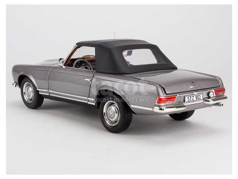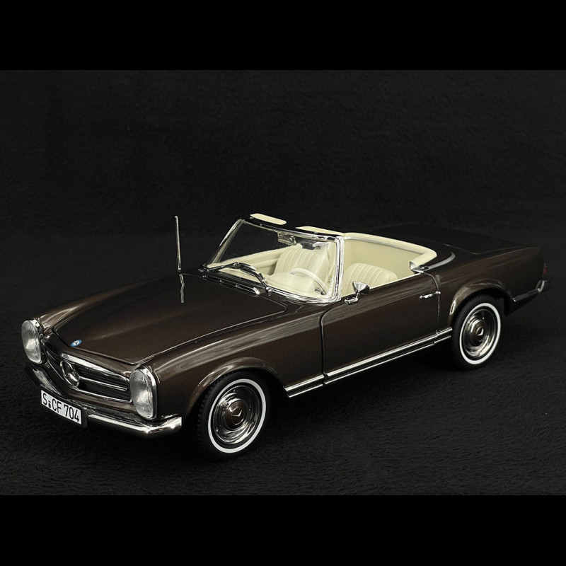 Ein absoluter Klassiker im Miniaturformat! Dieser Mercedes 230SL Pagode Roadster von Norev im Maßstab 1:18 ist ein wahres Sammlerstück. Mit stolzen 23cm Länge und jeder Menge Details macht dieses Modellauto richtig was her. Aus Metall mit Kunststoffteilen gefertigt, kannst du die Türen öffnen, die Motorhaube aufklappen, die Heckklappe öffnen und sogar das Dach abnehmen! Die Räder sind nicht nur drehbar, sondern auch lenkbar - wie bei einem echten Auto eben. Verpackt ist das ganze in einer stylischen Norev-Verpackung mit abnehmbarem Sockel, perfekt zur Aufstellung. Der Mercedes 230SL Pagode von 1963-1971 ist ja schon im Original ein Traumauto - und dieses Modell fängt den Charme perfekt ein. Ob für Oldtimer-Fans, Mercedes-Liebhaber oder einfach alle, die schöne Autos mögen - dieses Modell ist ein absoluter Hingucker in jeder Vitrine!