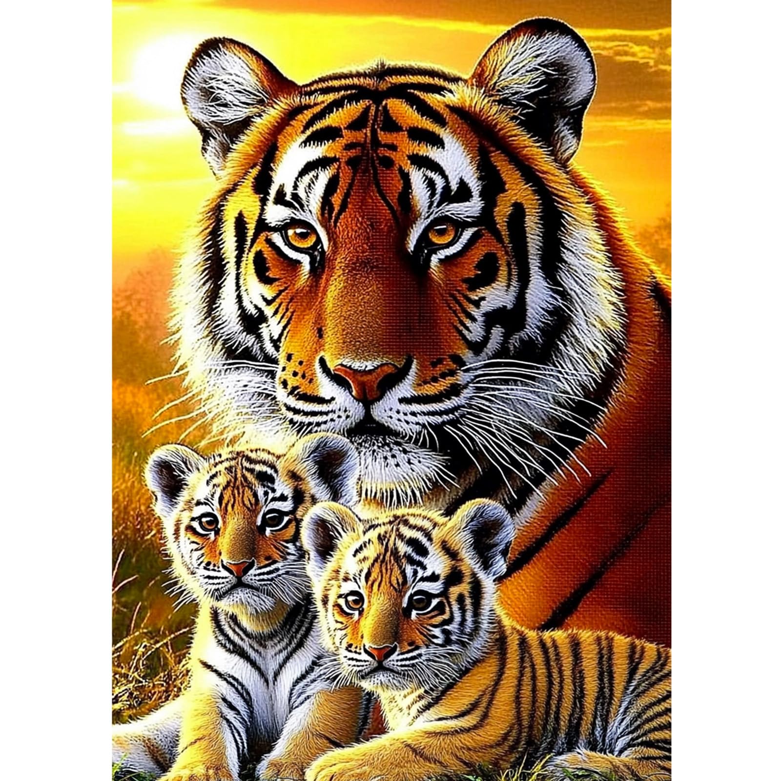 TOSTOG Diamond Painting Weiße Tiger Familie 30x40cm - 5D DIY Diamant Malerei Set