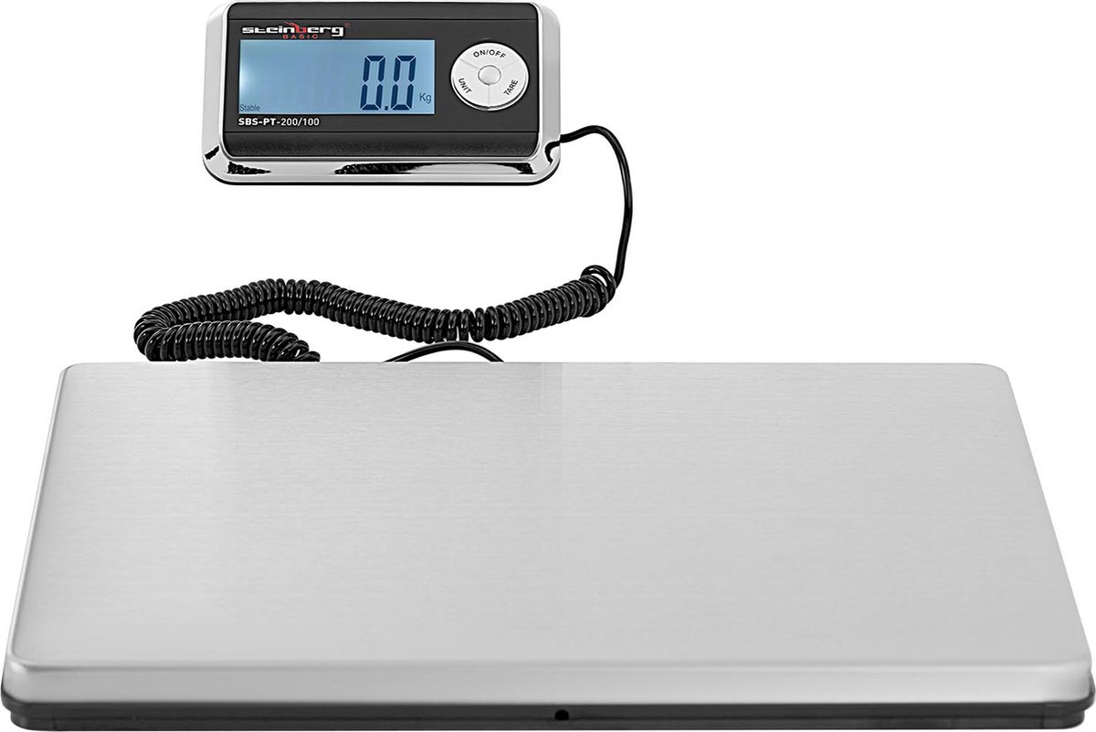 Perfekt für Versand und Lager! Diese digitale Paketwaage von Steinberg Systems misst bis zu 200kg mit einer Genauigkeit von 100g. Die große Edelstahl-Plattform (31x38,5cm) nimmt auch sperrige Pakete auf. Das externe LCD-Display mit Hintergrundbeleuchtung zeigt die Werte gut lesbar an. Einfache Bedienung mit 3-Tasten-Steuerung, verschiedene Messeinheiten verfügbar. Kann mit 4 AA-Batterien (ca. 77 Stunden Laufzeit) oder Netzkabel betrieben werden. Ideal für Paketdienste, Lager, Poststellen oder Online-Händler. Spart Zeit und Geld bei der Versandkostenberechnung. Robust verarbeitet für den täglichen Einsatz. Ein unverzichtbares Tool für jeden der regelmäßig Pakete versendet!