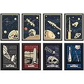 Ab ins All mit diesen coolen Weltraum-Postern! Das Set enthält 8 verschiedene A4-Poster im stylischen Vintage-Design, die kleine und große Astronauten auf ihren Raumfahrt-Abenteuern zeigen. Gedruckt auf stabilem 350GSM Papier sind die Poster besonders robust und lassen sich super an die Wand hängen. Perfekt fürs Kinderzimmer, Büro oder für alle, die das Universum lieben! Die Motive sind so gestaltet, dass sie sowohl Kinder als auch Erwachsene begeistern. Einfach auswählen, aufhängen und schon fühlst du dich wie im Weltraum! Super Preis-Leistungs-Verhältnis - für den Preis von einem Poster bekommst du gleich acht verschiedene Motive. Tolle Deko für Geburtstage, Kinderzimmer oder als Geschenk für Weltraum-Fans!