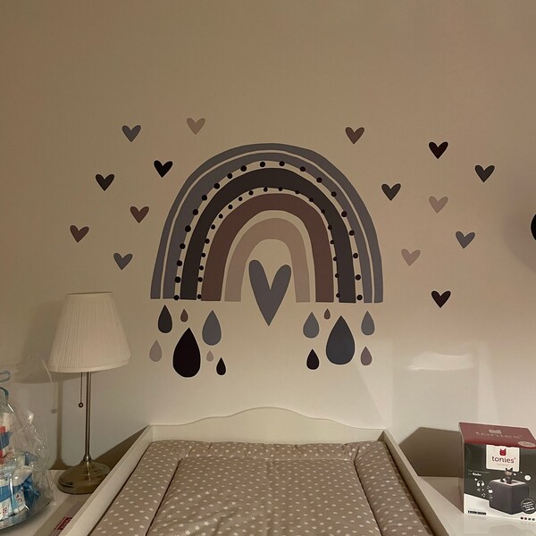 Wie süß ist denn dieser Regenbogen? Der Wandaufkleber verwandelt jedes Kinder- oder Babyzimmer in eine fröhliche Wohlfühloase! Ob für Jungs oder Mädchen - die designs sind so liebevoll gestaltet, dass sie einfach jedem gefallen. Hergestellt in Deutschland aus hochwertiger Vinylfolie mit matter Oberfläche, die sich super einfach anbringen lässt. Einfach vom Trägerpapier lösen und auf die gewünschte Fläche drücken - schon hat das Zimmer einen ganz neuen Look! Das beste: Die Aufkleber sind geruchlos, ohne schädliche Weichmacher und chlorfrei - also absolut unbedenklich für Kinderzimmer. Sie halten super auf Raufasertapeten und lassen sich bei Bedarf auch rückstandslos wieder entfernen. Perfekt als Geschenk zur Geburt, zum Geburtstag oder einfach so, um dem Zimmer deines Kindes eine persönliche Note zu verleihen. Mit diesem Wandtattoo bringst du Farbe und gute Laune ins Kinderzimmer!