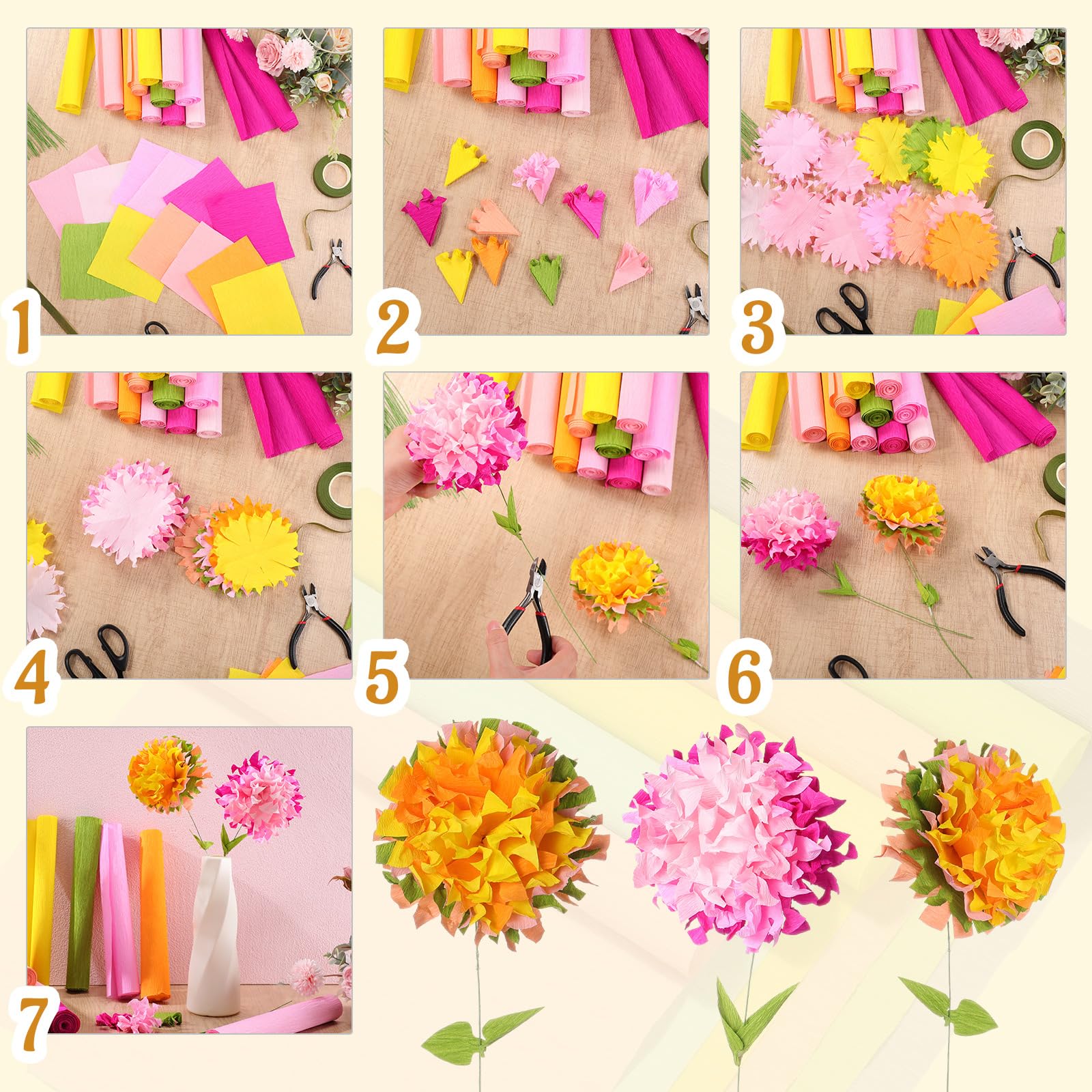 • Mardatt 62-teiliges Crepe Papier Blumen DIY-Kit - 10 Farben Regenbogen