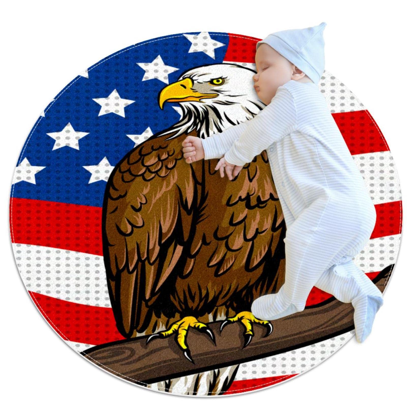 Runder Teppich USA Flagge - Patriotischer Adler Design, Rutschfest & Waschbar