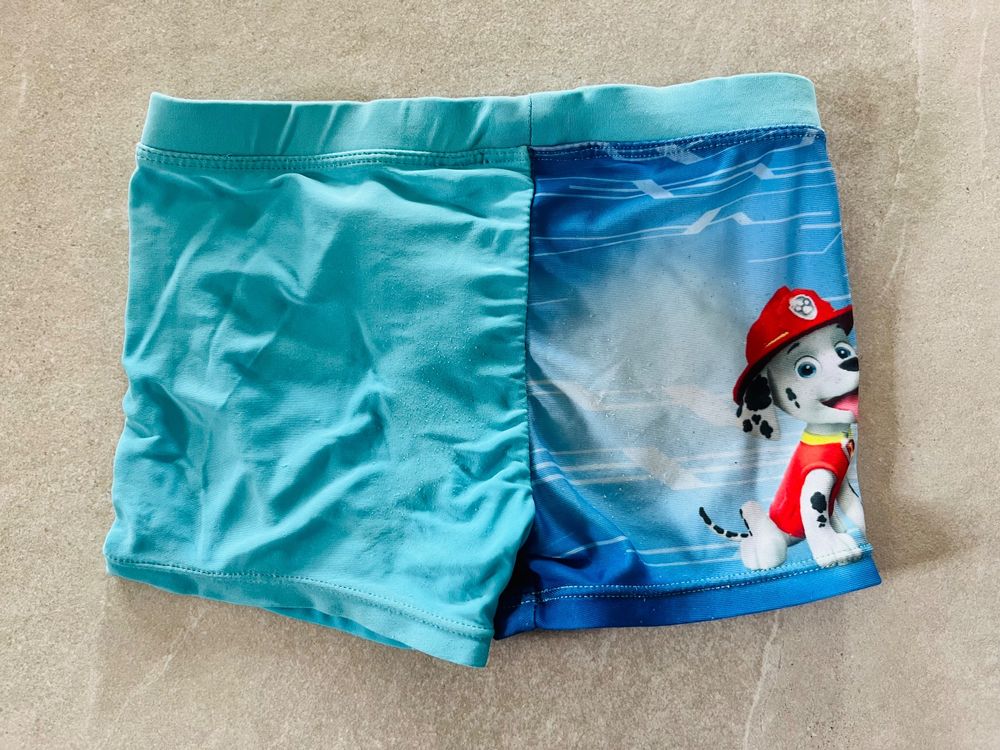 Ahoi, kleine Wasserratten! Mit dieser offiziellen Paw Patrol Badehose wird jeder Badeausflug zum Abenteuer. Die coole grüne Hose zeigt alle Lieblingscharaktere aus der beliebten Kinderserie und sorgt für strahlende Augen beim Nachwuchs.\\n\\nSuper praktisch: Die Hose besteht aus 82% Polyester und 18% Elastan, trocknet daher superschnell und sitzt dabei perfekt. Das weiche Futter aus 100% Polyester fühlt sich angenehm auf der Haut an und kratzt nicht.\\n\\nErhältlich in verschiedenen Größen:\\n• 3 Jahre (98 cm)\\n• 4 Jahre (104 cm)\\n• 6 Jahre (116 cm)\\n• 8 Jahre (128 cm)\\n\\nOb im Schwimmbad, am See oder im Meer - mit dieser Badehose ist Dein Kind bestens ausgestattet für alle Wasserabenteuer. Und das Beste: Die Hose ist nicht nur stylisch, sondern auch superbequem. So macht Schwimmen lernen gleich doppelt Spaß!