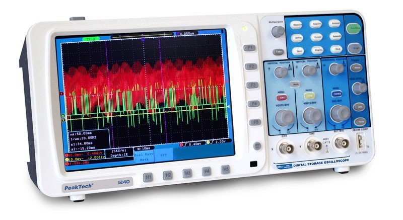 Hey, das PeakTech P 1206 ist echt der Hammer für alle Elektronik-Fans! Stell dir vor: Ein vollwertiges Oszilloskop in Tablet-Form - damit kannst du überall Messungen durchführen. Mit 70 MHz Bandbreite und 1 GS/s Abtastrate kriegst du selbst schnelle Signale super in den Griff. Der 8-Zoll Touchscreen macht die Bedienung total intuitiv - kein Rumgedrücke mit komplizierten Knöpfen mehr! Obwohl es so kompakt ist, hat es eine mega Speichertiefe von 40 Millionen Punkten. Das Akku hält mit 8000 mLi-Po richtig lange durch - perfekt für unterwegs in der Werkstatt oder auf der Baustelle. Und das Beste: Es ist nicht nur ein Oszilloskop, sondern auch noch ein Multimeter in einem! Die Auflösung von 800 x 600 Pixeln zeigt alles gestochen scharf an. Für mich als Elektroniker ist das Ding ein absoluter Game-Changer - endlich muss ich nicht mehr das schwere Laborgerät mitschleppen. Die beiden Kanäle reichen für die meisten Messaufgaben völlig aus. Und falls du mal was speichern willst: Mit der Multimedia-Funktion kannst du Messdaten easy aufzeichnen und später auswerten. Egal ob du Student, Hobby-Elektroniker oder Profi bist - mit diesem Teil machst du nichts verkehrt!