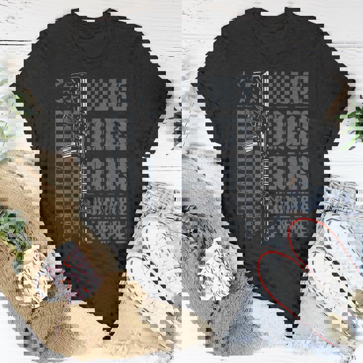 Dieses T-Shirt spricht allen Hunde-Fans aus der Seele! Mit dem witzigen Aufdruck 'I Like Dogs Guns And Maybe 3 People' und handgezeichneten Illustrationen sorgst du garantiert für Lacher. Das kreative Tier-Design ist perfekt für alle, die ihre Liebe zu Hunden humorvoll zeigen wollen. Ob für Mädchen, Jungen, Männer oder Frauen - der klassische Schnitt passt jedem. Doppelt genähter Saum für extra Langlebigkeit, auch nach häufigem Waschen. Ein ideales Geschenk für deine besten Freunde oder einfach für dich selbst. Einfach anziehen und die Blicke genießen - dieses Shirt ist einfach ein Statement für alle, die Hunde über alles lieben!