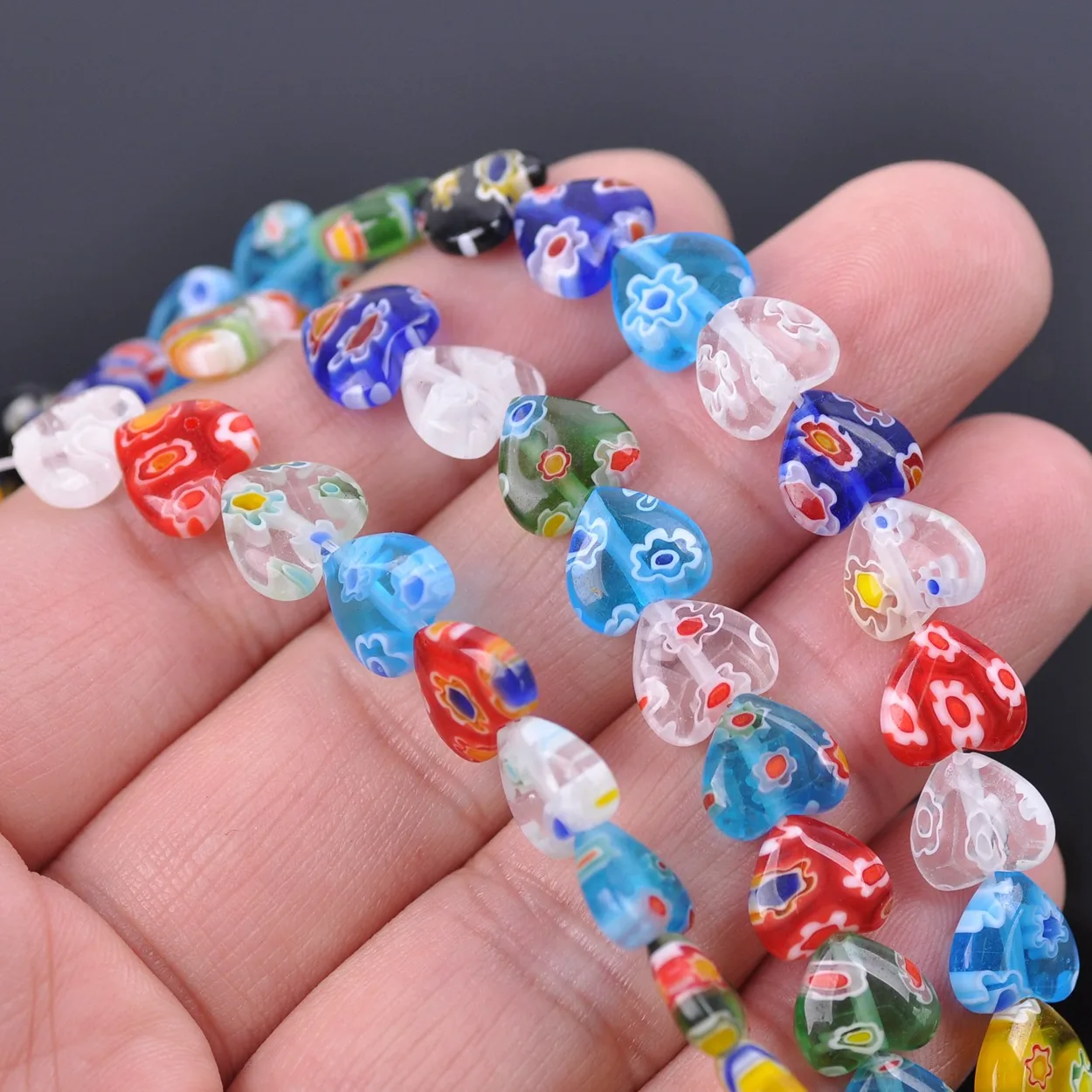 Kreativität ohne Grenzen! Dieses umfangreiche Set mit 100 handgefertigten Millefiori Perlen in Herzform lässt das Herz jedes Schmuckliebhabers höher schlagen. Jede Perle ist ein Unikat mit bezaubernden, farbenfrohen Mustern, die in traditioneller Lampwork-Technik hergestellt wurden. Mit den Maßen 8mm Länge, 8mm Breite und 3mm Dicke sowie einer Bohrung von 0,5mm sind die Perlen ideal für die verschiedensten Schmuckprojekte geeignet. Ob Armbänder, Halsketten, Ohrringe oder Schlüsselanhänger - Ihrer Fantasie sind keine Grenzen gesetzt. Die hochwertigen Glasperlen sind robust, lichtbeständig und behalten lange ihre strahlenden Farben. Perfekt für DIY-Projekte, Geschenke zu besonderen Anlässen wie Valentinstag, Geburtstage oder Weihnachten. Teilen Sie die Freude am Basteln mit Familie und Freunden oder genießen Sie entspannende Stunden bei der Kreation einzigartiger Schmuckstücke. Ein wahrer Schatz für alle Kreativen!