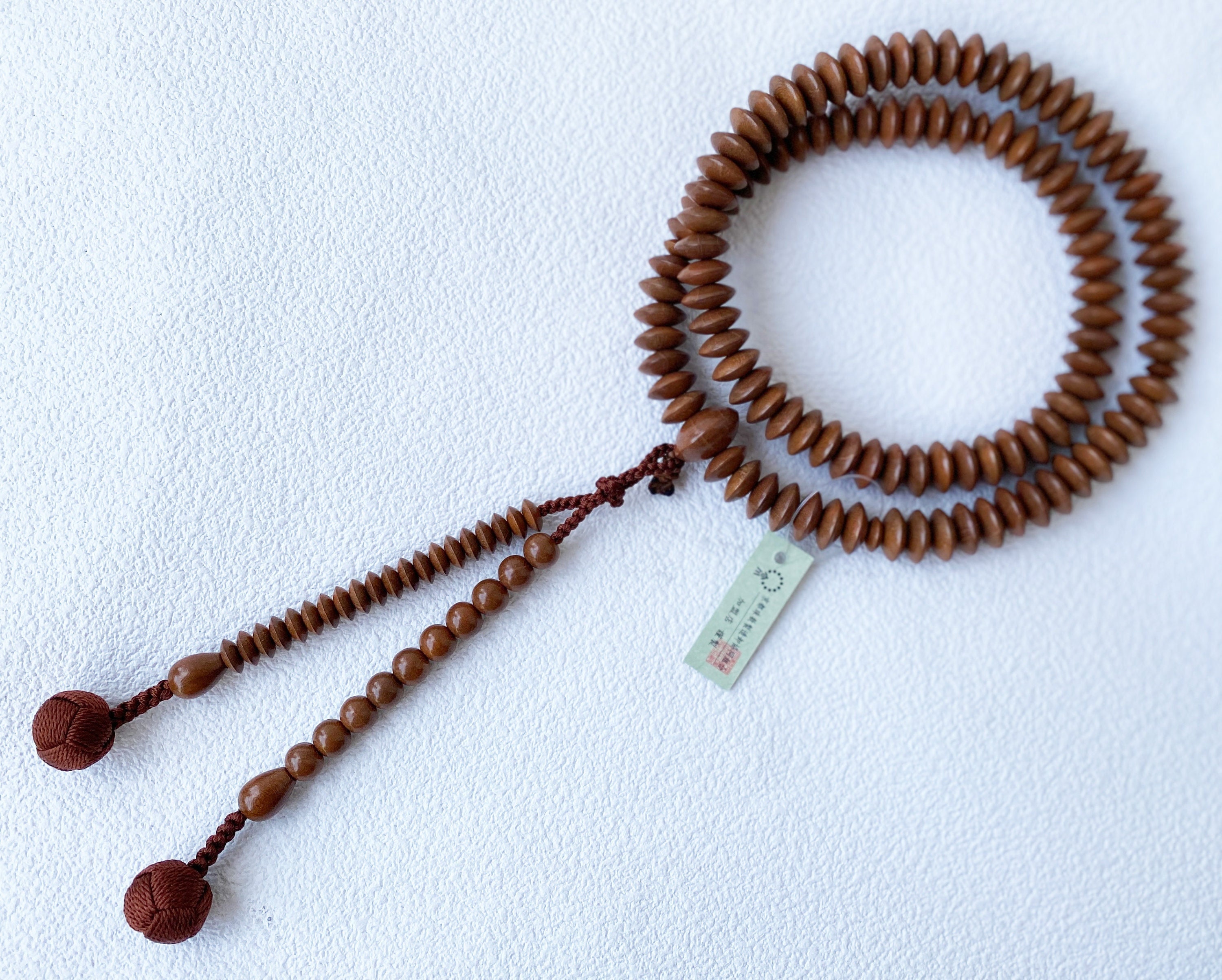 Entdecke die besondere Atmosphäre des buddhistischen Rosenkranzes! Diese Mallah-Perlen werden in Nepal liebevoll von Hand gefertigt und kommen in einer hübschen Geschenkbox aus Lokta-Papier. Mit einer Länge von ca. 82 cm kannst du sie um den Hals tragen oder als Armband verwenden. Die Perlen begleiten dich beim Rezitieren des Mantras 'Om Mani Padme Hum' - eine wunderbare Unterstützung für Meditation und innere Ruhe. Die Quaste kann in rot oder orange variieren, was jedes Set einzigartig macht. Ein fair gehandeltes, spirituelles Accessoire, das nicht nur gut aussieht, sondern auch positive Energie verbreitet. Perfekt als Geschenk oder für dich selbst, um mehr Achtsamkeit in den Alltag zu bringen.