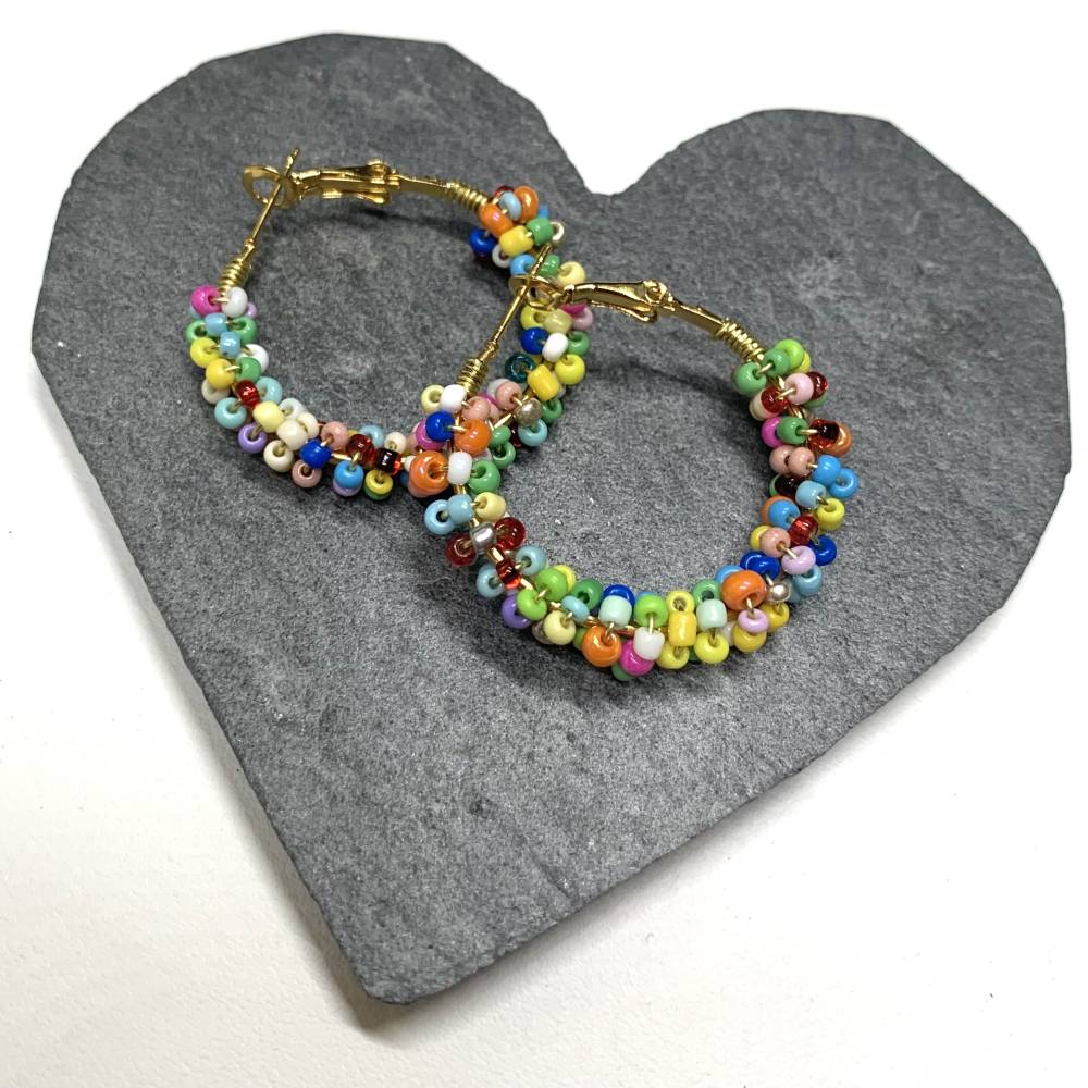 Wow, diese böhmischen Perlen-Ohrringe sind einfach traumhaft! Voll bunt und fröhlich, genau richtig für den Sommer. Inspiriert vom Boho-Stil - da steckt Freiheit, Romantik und Kunst drin. Jedes Paar ist handgefertigt, mit hochwertigen Perlen und ner Legierung die auch für empfindliche Ohren geeignet ist. Perfekt für Festival, Strand oder einfach mal im Alltag um bisschen Farbe reinzubringen. Die Ohrringe sind nicht zu schwer aber trotzdem ein richtiger Hingucker. Super Geschenk-Idee für Freundin, Mama oder einfach für dich selbst! Kommen in nem hübschen Beutelchen - ideal zum Verschenken.