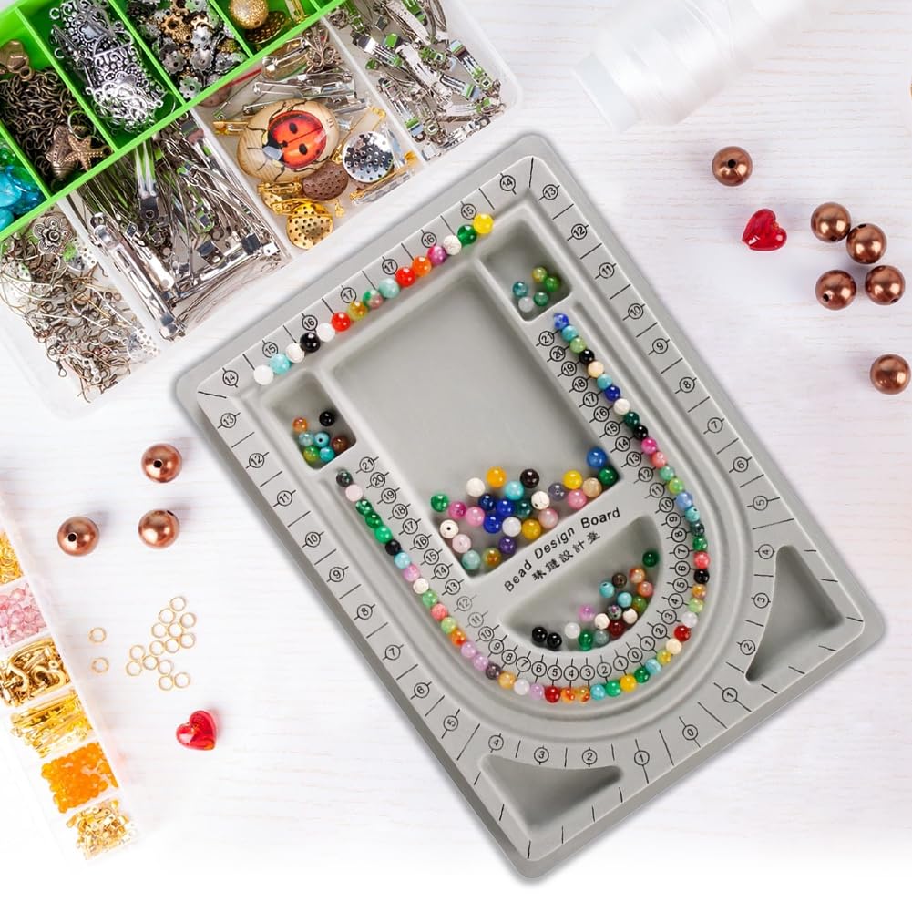 Das ultimative Tool für alle Bastelfans und Schmuckdesigner! Dieses praktische Perlenbrett aus Polyethylen (24x32 cm) hilft dir beim Entwurf und Auffädeln deiner Perlenkreationen. Die Rillen halten die Perlen sicher in Position, während die Skala dir die genaue Länge anzeigt. Die halbrunden Vertiefungen sind perfekt für Perlen oder Werkzeuge. So kannst du verschiedene Designs ausprobieren, bevor du sie zusammenfügst - kein lästiges Auf- und Abfädeln mehr! Ideal für Profis und Hobby-Bastler, die perfekte Ketten, Armbänder und mehr gestalten wollen. (Perlen nicht im Lieferumfang)