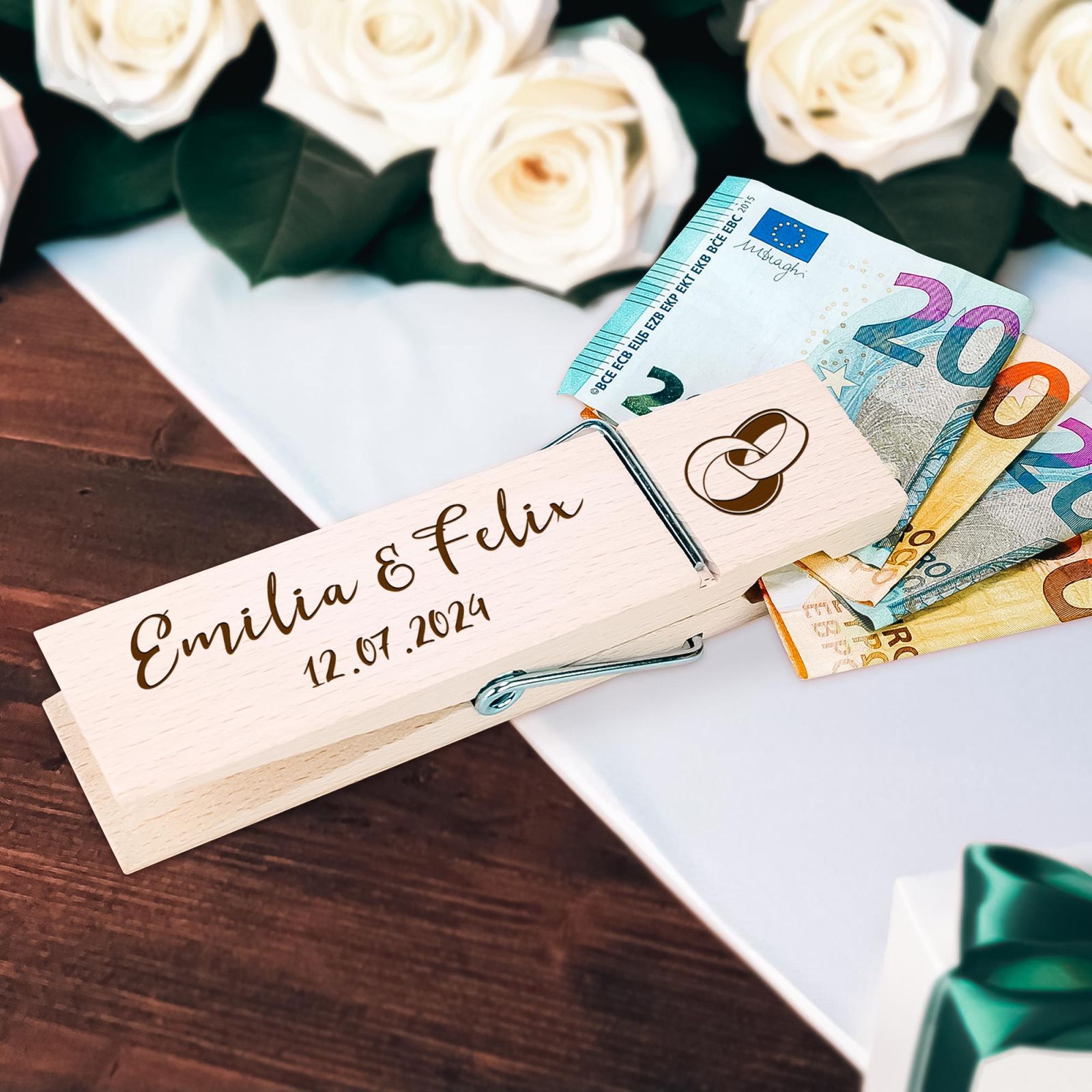 Lass deine Initialen, ein besonderes Datum oder einen kurzen Spruch gravieren - deine Klammer wird zum Unikat! Mit 53x26mm ist sie handlich aber stabil genug für alle gängigen Scheine.