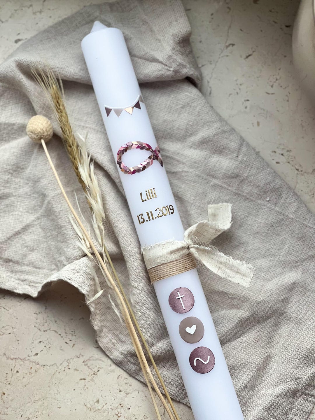 Wow, was für eine besondere Kerze! Diese wunderschöne Tauf- oder Kommunionskerze wird erst nach deiner Bestellung in liebevoller Handarbeit für dich angefertigt. Mit 40 cm Höfe und dem eleganten Weiß-Silber-Design ist sie ein echter Hingucker für den großen Tag. Und das Beste: Du kannst sie persönlich gestalten lassen! Einfach nach dem Kauf deinen Wunschtext durchgeben - ob Name, Datum oder ein besonderer Spruch. Die Lieferung erfolgt super schnell in 2-3 Werktagen, sodass du dir keine Sorgen machen musst. Übrigens: Die Kerze entspricht allen Sicherheitsstandards, aber bitte denk daran, sie nie unbeaufsichtigt brennen zu lassen und nicht in der Nähe von brennbaren Materialien zu verwenden. Bei Fragen kannst du uns einfach anrufen - wir sind täglich von 10-23 Uhr für dich da. Perfekt als Erinnerungsstück, das noch Jahre später von diesem besonderen Tag erzählt!