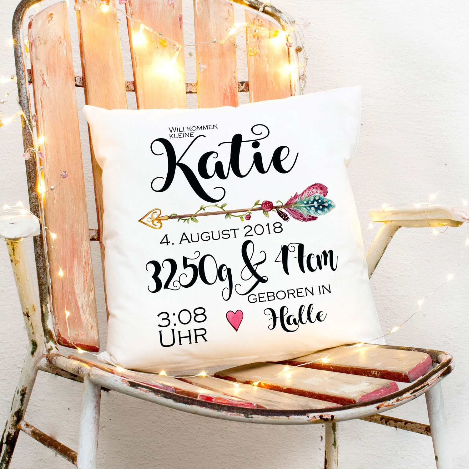Personalisiertes Baby Kissen 40x40cm - Mit Namen & Geburtsdaten, Geschenk Zur Geburt
