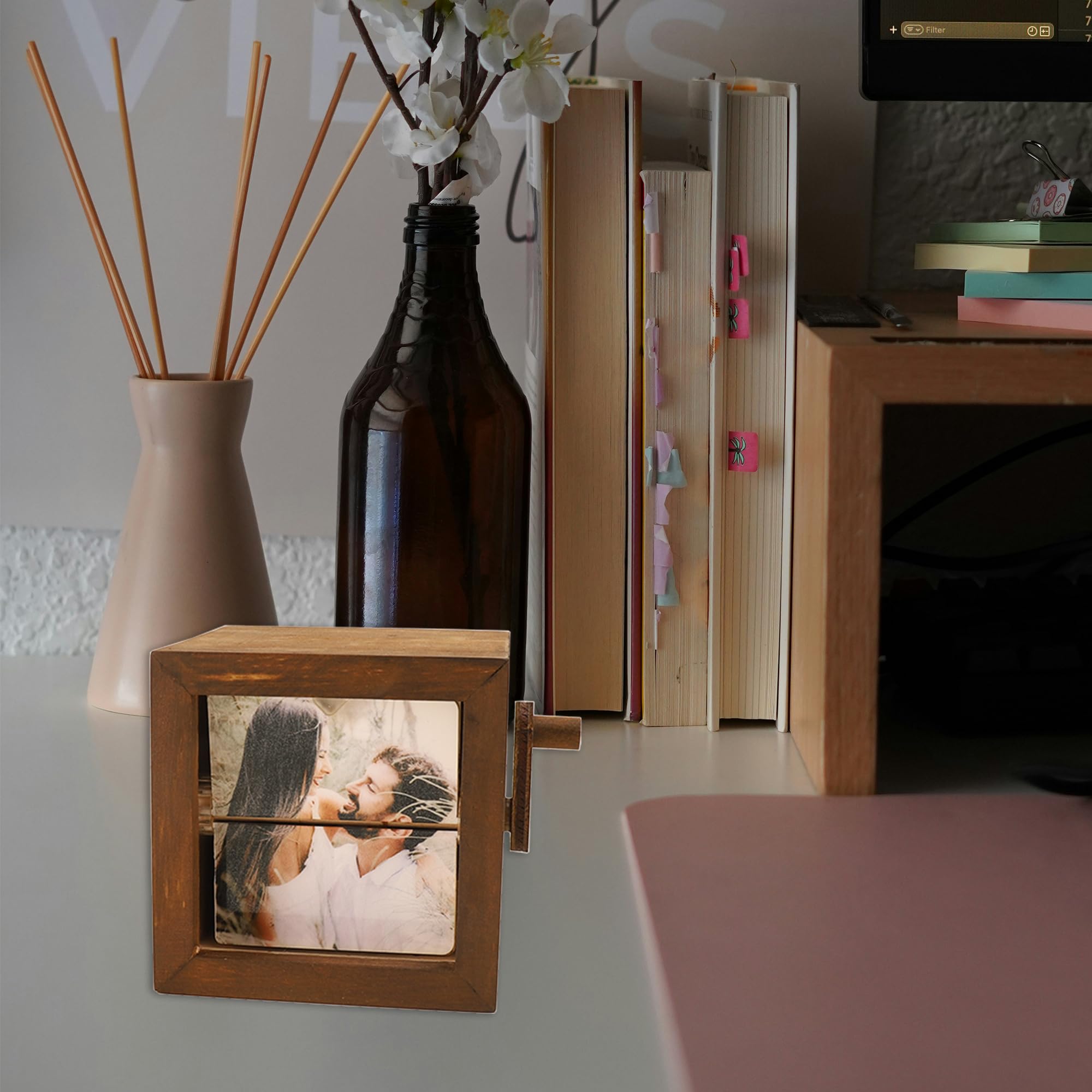 Erwecke deine Erinnerungen zum Leben! Dieses mechanische Daumenkino-Fotoalbum ist etwas ganz Besonderes. Einfach deine Lieblingsfotos einlegen (bis zu 16 Stück) und durch Drehen der Handkurbel entsteht ein faszinierender Animationseffekt. Aus hochwertigem Holz gefertigt, in drei Farben erhältlich: Buchengelb, Walnuss oder Naturholz. Mit integrierter LED-Beleuchtung die deine Bilder perfekt in Szene setzt. Nur 230g leicht und kompakt - ideal für den Schreibtisch, Regal oder Nachttisch. Perfekt als Geschenk für Paare, Familien oder Freunde. Ob zur Hochzeit, Geburtstag, Jubiläum oder einfach so - dieses einzigartige Album verwandelt normale Fotos in eine magische Erzählung. Das vintage Design mit moderner Technologie begeistert Jung und Alt. Einfach die Fotos wechseln und schon hast du eine neue Geschichte parat. Mach deine schönsten Momente unvergesslich mit diesem besonderen Stück Handwerkskunst!
