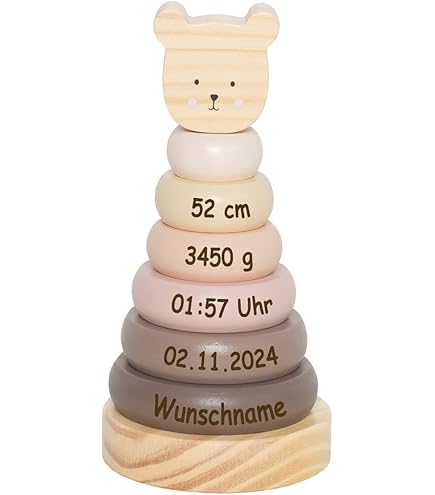 Personalisiertes Holz-Stapelturm Mit Gravur - Geburtsgeschenk Mit Namen & Geburtsdatum