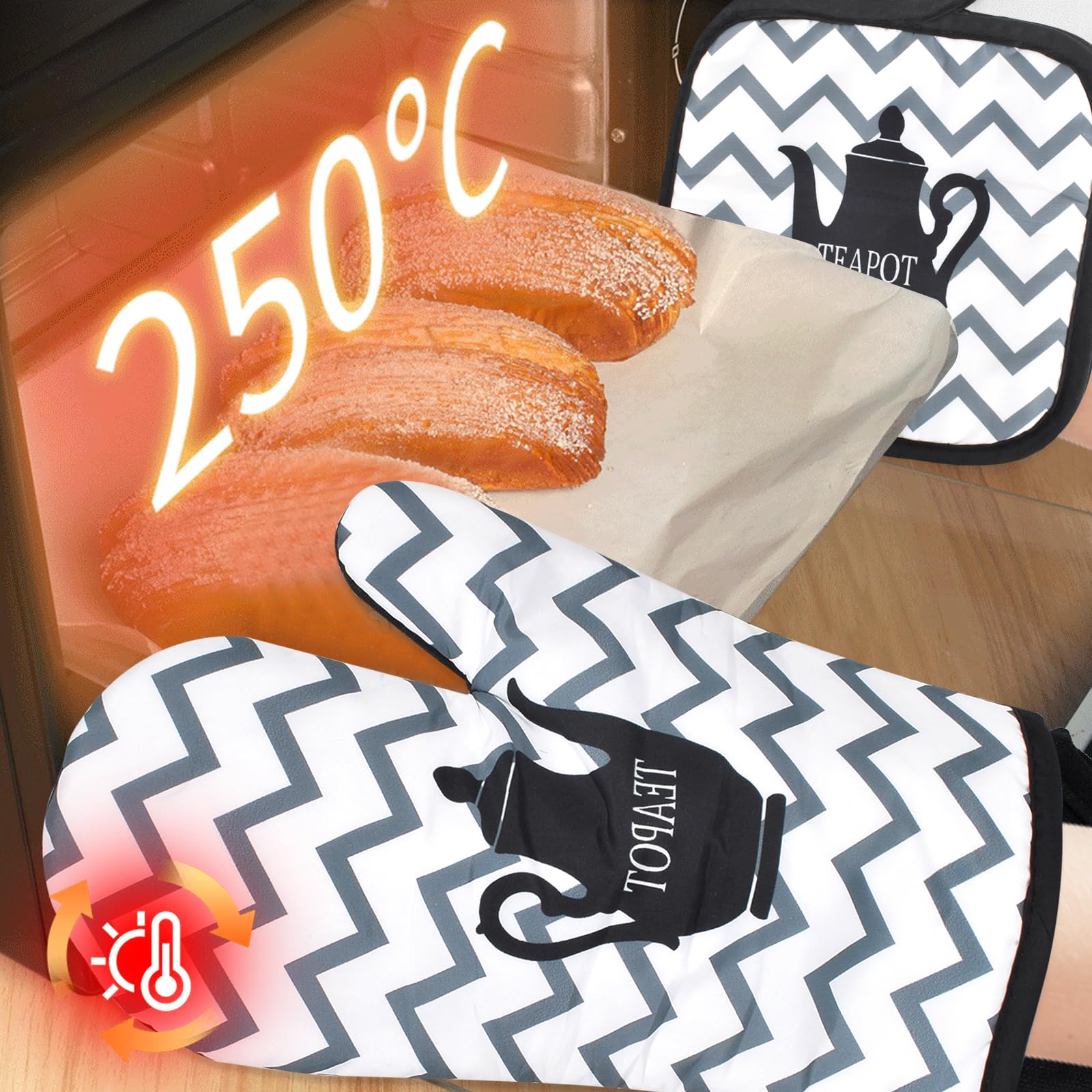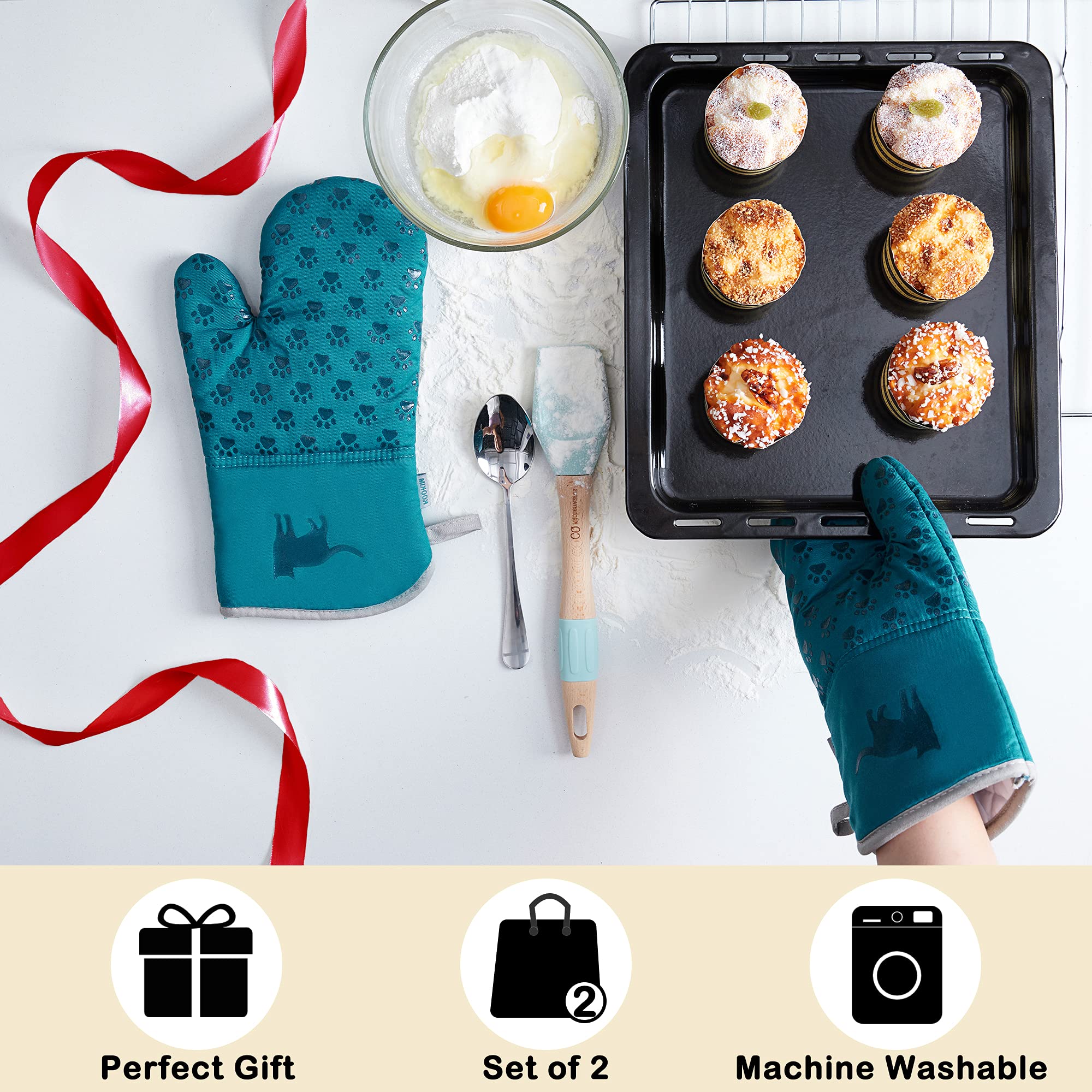 Diese süßen Ofenhandschuhe mit Katzen-Motiv sind nicht nur hübsch anzusehen, sondern auch superpraktisch! Aus 100% Baumwolle gefertigt, schützen sie zuverlässig vor Hitze beim Backen, Grillen oder Kochen. Mit den Maßen 15x32 cm passen sie für Frauen- und Männerhände gleichermaßen - ein Unisex-Produkt für die ganze Familie. Das gestickte Katzen-Logo verblasst nicht und ist waschmaschinenfest. So bleiben die Handschuhe auch nach häufigem Waschen schön. Ob du den Braten aus dem Ofen holst, Grillfleisch wendest oder heiße Töpfe bewegen musst - mit diesen Handschuhen bist du sicher vor Verbrennungen. Die Baumwolle innen ist angenehm weich und kratzt nicht. Perfekt als Geschenk für Katzenliebhaber, Hobbyköche oder einfach für dich selbst. Sie sehen in jeder Küche gut aus und sind ein echter Hingucker. Auch als Topflappen geeignet - einfach vielseitig einsetzbar. Style und Sicherheit in einem - was will man mehr?