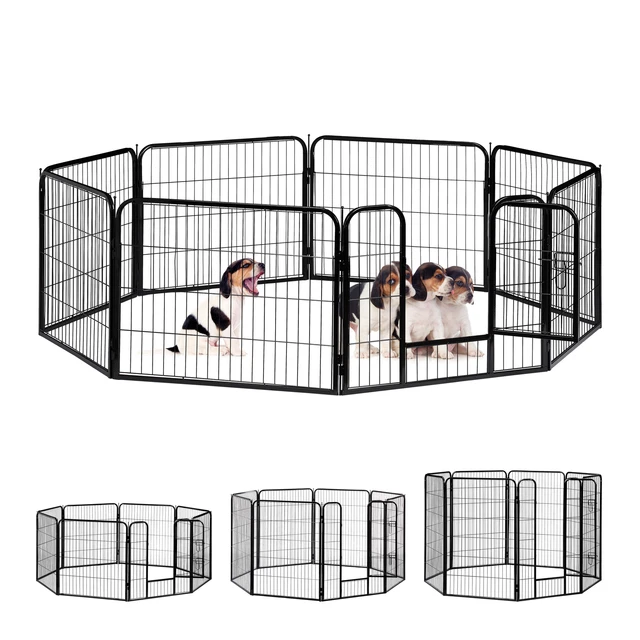 Dein Welpe oder Hoppler braucht Platz zum Toben? Der Petigi Auslauf ist die Lösung! Stabiles, pulverbeschichtetes Stahlgitter, das du flexibel als Rechteck, Sechseck oder an die Ecken anpassen kannst – für drinnen und draußen. Mit Erdnägeln (bis 13 cm Tiefe) steht es bombenfest, und zwei Elemente haben eine Tür mit erhöhtem Ausstieg, damit nur erwachsene Tiere rauskommen. Zusammenklappbar für platzsparende Aufbewahrung, und die Reinigung ist ein Kinderspiel. Erhältlich in verschiedenen Höhen (60–120 cm) und Breiten – ob 16 oder 24 Teile. Gitterstab-Abstand: 47 mm, sicher für kleine Tiere. Ideal für Welpen, Kaninchen, aber auch Gänse oder Hühner. Mehr Freiheit für deine Lieblinge, weniger Stress für dich!
