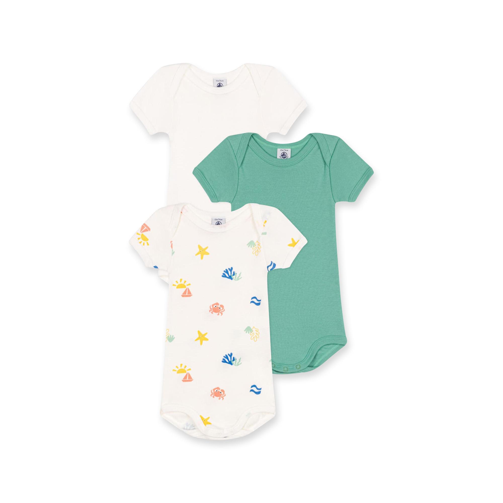 • Petit Bateau Baby Bodies 3er Pack Jungen - Kurzarm Bodies Aus Rippstrick