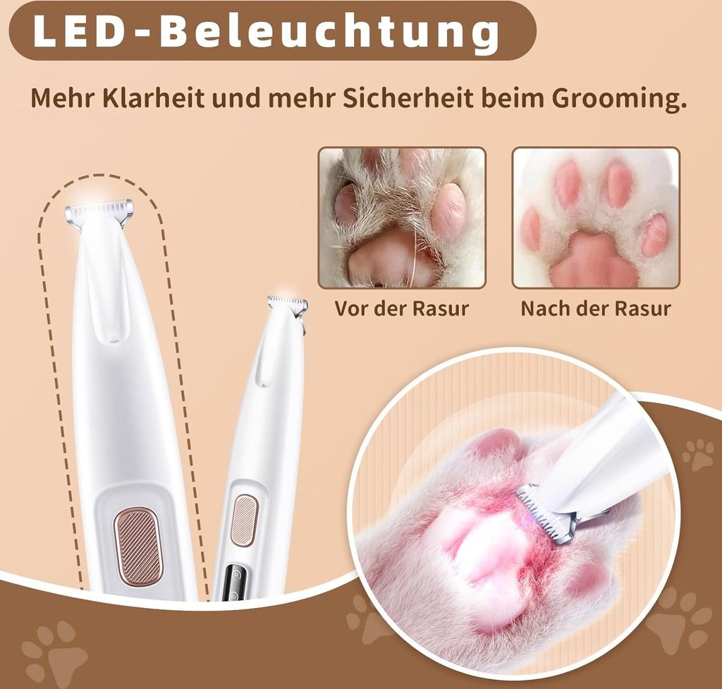 Dein Hund oder deine Katze hasst die Fellpflege? Dieser leise Trimmer macht's erträglicher für beide! Speziell für sensible Bereiche wie Pfoten, Gesicht, Augen und Ohren entwickelt. Super leise, damit dein Tier nicht erschrickt. Die rutschfeste, ergonomische Form liegt gut in der Hand, auch bei längerem Gebrauch. Mit Schutzgitter, damit du dein Liebling nicht aus Versehen verletzt. Perfekt für Welpen und Kätzchen, aber auch für erwachsene Tiere. Einfach per USB-C aufladen und los geht's! Entfernt überschüssiges Fell zwischen den Ballen und macht die Pflege zum Kinderspiel. Endlich keine Kämpfe mehr beim Trimmen - dein Tier bleibt entspannt, und du kriegst alles sauber hin. Ein Must-Have für jeden Haustierbesitzer!