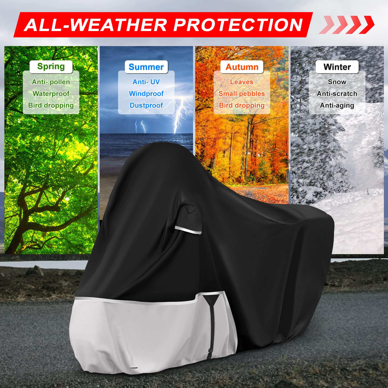 Dein Piaggio MP3 verdient den besten Schutz! Diese speziell für die MP3 400/500 Modelle mit Kofferraum gefertigte Abdeckung hält deinen Roller bei jedem Wetter sicher geschützt.\n\nAus robustem 420D Oxford-Stoff gefertigt, ist die Abdeckung nicht nur wasserdicht, sondern auch UV-beständig und staubabweisend. Die winddichten Schnallen und verstellbaren Gummibänder sorgen dafür, dass die Plane auch bei starkem Wind sicher sitzt und nicht wegfliegt.\n\nPraktische Features wie die Antennen-Aufbewahrungstasche (keine Löcher, die Wasser durchlassen!) und reflektierende Streifen für bessere Sichtbarkeit in der Nacht machen diese Abdeckung zum echten Allrounder. Mesh-Belüftungsöffnungen verhindern Gerüche und Feuchtigkeit unter der Abdeckung.\n\nEgal ob Regen, Schnee, Staub, UV-Strahlen oder neugierige Katzen - diese Abdeckung schützt deinen MP3 vor allem, was das Wetter und die Umwelt so bieten. Die mitgelieferte Aufbewahrungstasche macht das Verstauen super einfach. Ein Muss für jeden MP3-Besitzer, der sein Gefährt liebt!