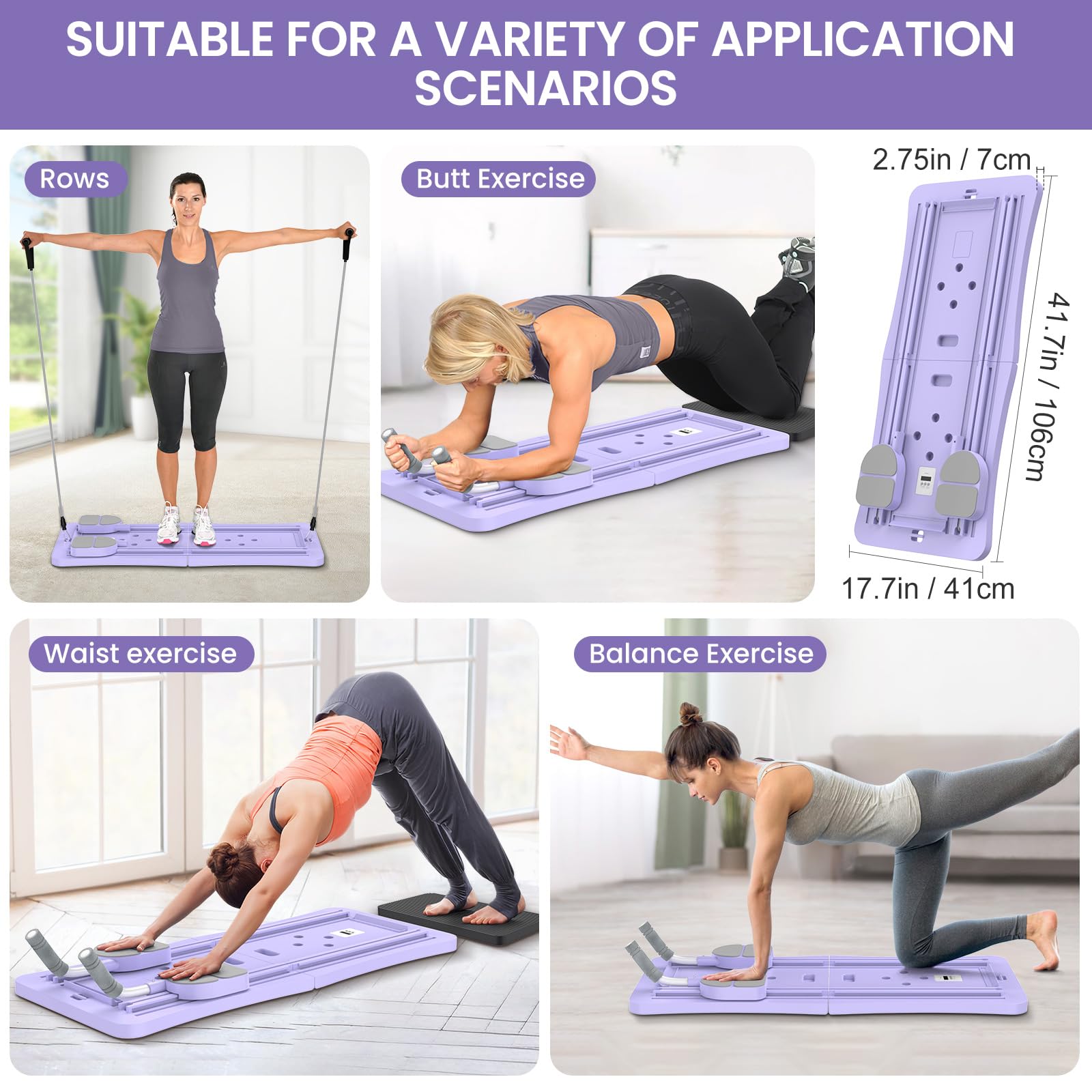 Wow, dieses 5-in-1 Pilates Gerät ist echt der Hammer! Damit kannst du nicht nur deine Bauchmuskeln trainieren, sondern wirklich den ganzen Körper - Arme, Beine, Rücken, einfach alles. Das Beste: Es ist klappbar! Wenn du nicht trainierst, klappst du es einfach zusammen und stellst es in die Ecke. Super praktisch für kleine Wohnungen.\n\nDie automatische Rückprall-Technologie mit der 50 Pfund elastischen Silikonschnur gibt dir den perfekten Widerstand. Egal ob du Fitness-Anfänger bist oder schon ein alter Hase - hier findet jeder das richtige Level. Und der Timer hilft dir, deine Trainingseinheiten perfekt zu timen.\n\nDie Polsterung ist mega bequem: 20 mm dicke Ellbogenschützer aus TPE, 8 mm Kniepolster aus EVA und weiche Schaumstoffgriffe, die den Schweiß absorbieren. Da macht auch langes Training richtig Spaß!\n\nDas PP-Material ist super stabil und kippt nicht um. Perfekt fürs Home-Gym, aber auch fürs Fitnessstudio oder sogar fürs Büro. Einfach aufbauen und loslegen - dein persönlicher Personal Trainer für zu Hause!