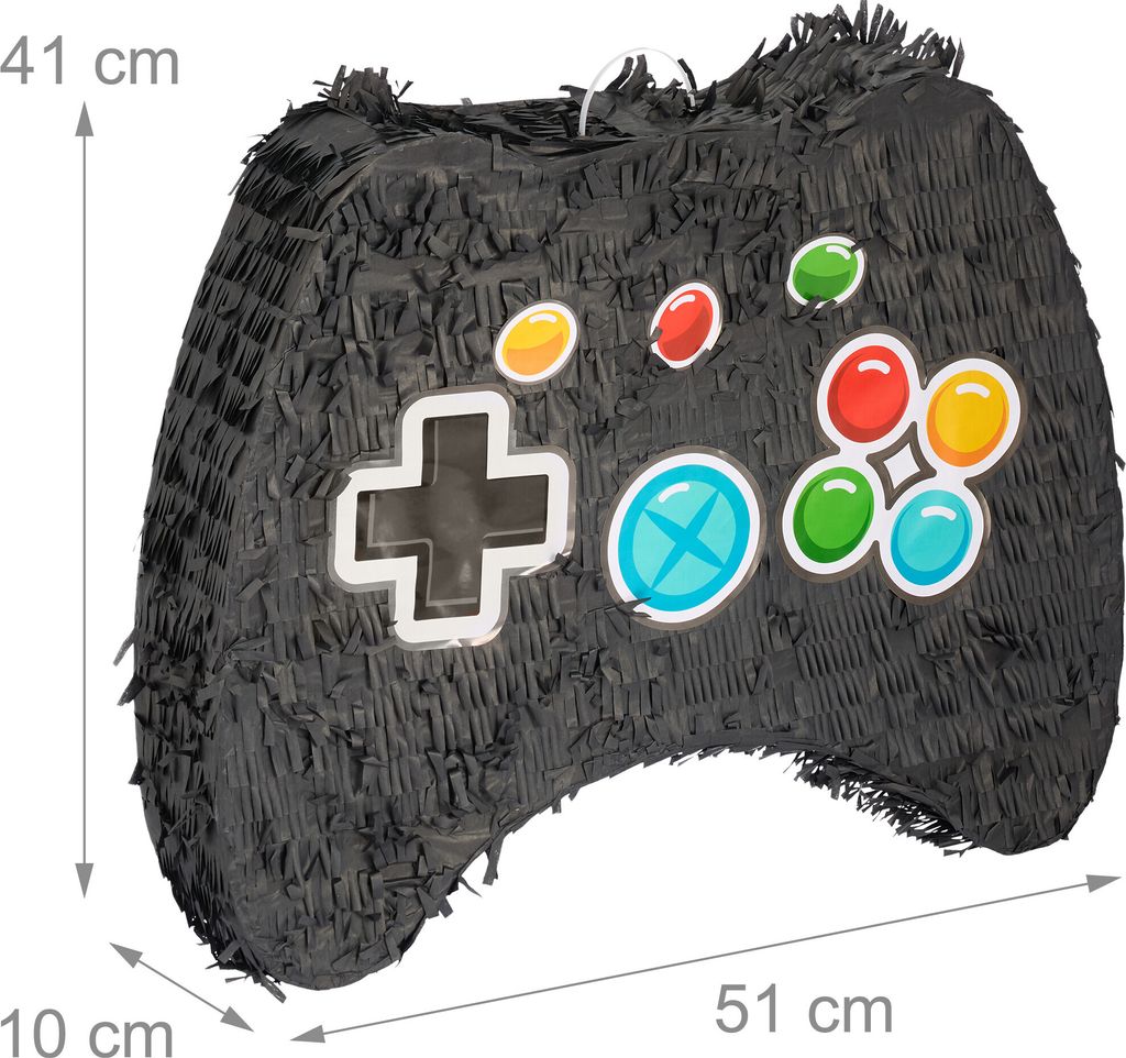 Level Up für Deine nächste Party! Diese coole Gamer-Pinata in Controller-Form ist der absolute Hit auf jedem Kindergeburtstag. Mit 30 x 46 x 9 cm ist sie groß genug für viele Süßigkeiten und Überraschungen. Im Set sind schon Stab und Augenmaske enthalten - Du musst nur noch die Leckereien reinpacken! Einfach an einem Ast oder Haken aufhängen (dank praktischer Schlaufe kein Problem) und das Spiel kann beginnen: Die Kinder schlagen abwechselnd mit verbundenen Augen auf die Pinata ein, bis sie platzt und die Überraschungen herauspurzeln! Je höher Du sie hängst, desto schwieriger wird's. Aber Vorsicht: Dies ist ein Dekorationsartikel und kein Spielzeug! Nicht in die Nähe von Feuer bringen und beachten, dass die Farbe bei Nässe abfärben kann. Perfekt für Gaming-Partys, Einschulungsfeiern oder Junggesellinnenabschiede. Die bunte Controller-Optik kommt bei großen und kleinen Gamern gleichermaßen gut an! Einfach zusammengefaltet geliefert - nur an den Bändern ziehen und schon ist sie einsatzbereit. Der garantierte Spaßfaktor für Deine nächste Feier!