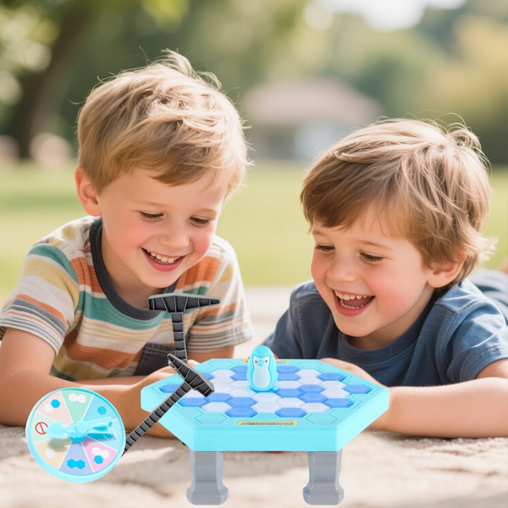 Achtung, der Pinguin könnte fallen! Dieses super lustige Eisbrecher-Spiel bringt Action und Spaß für die ganze Familie. So funktioniert's: Eisschollen auf die Plattform legen, Pinguin draufsetzen und dann abwechselnd die Eisstücke mit dem Hammer herausschlagen - aber Vorsicht, wer den Pinguin zum Fallen bringt, hat verloren! Perfekt für Kinder ab 3 Jahren und Erwachsene gleichermaßen. Fördert die Hand-Auge-Koordination, strategisches Denken und macht einfach irre Spaß. Aus robustem Kunststoff, Maße 17x15x6,5 cm - ideal für den Spieltisch oder mitnehmbar für unterwegs. Super als Geschenk für Kindergeburtstage, Familienabende oder einfach mal für zwischendurch. Die Regeln sind schnell erklärt und nach 2 Runden hat's jeder raus. Wer rettet den Pinguin? Findet es heraus!